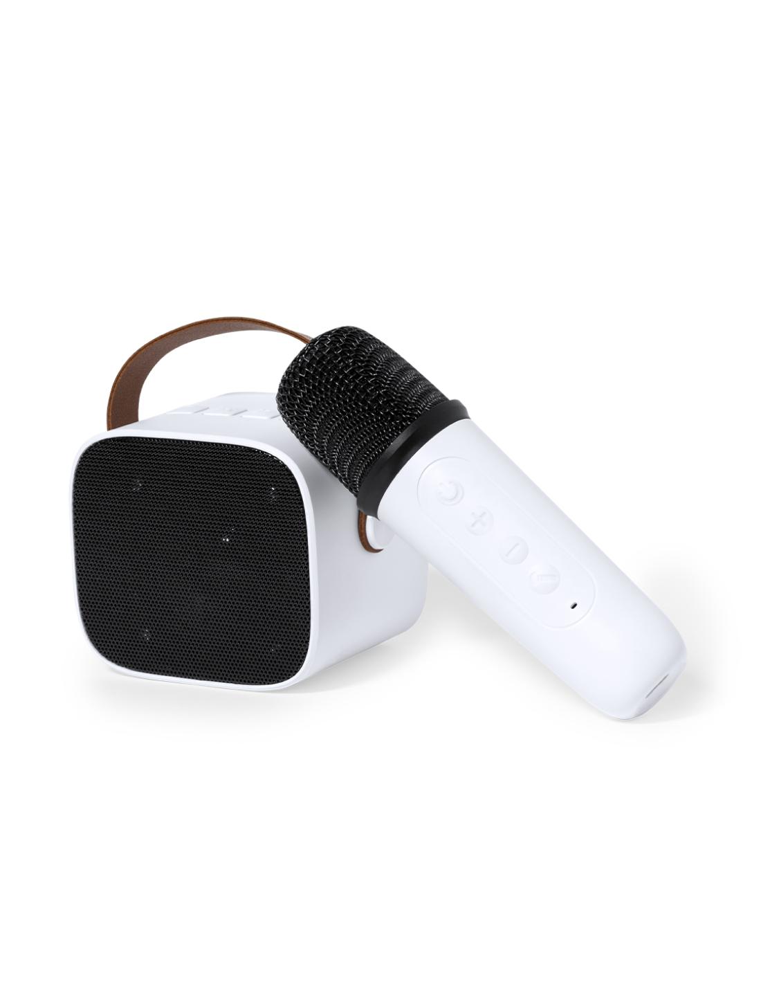 Original pack de karaoke con altavoz y micrófono. Su compacto tamaño y la facilidad de la conexión Bluetooth lo convierte en un ideal accesorio para para disfrutar en cualquier lugar y momento. Incluye:Altavoz con práctica asa de transporte en PU. 5W de potencia y batería de 1200 mAh de larga duración.Micrófono con diseño ergonómico a juego para disfrutar de las mejores canciones.Presentado en caja de diseño Kraft. Disponible manual de instrucciones en español e inglés.