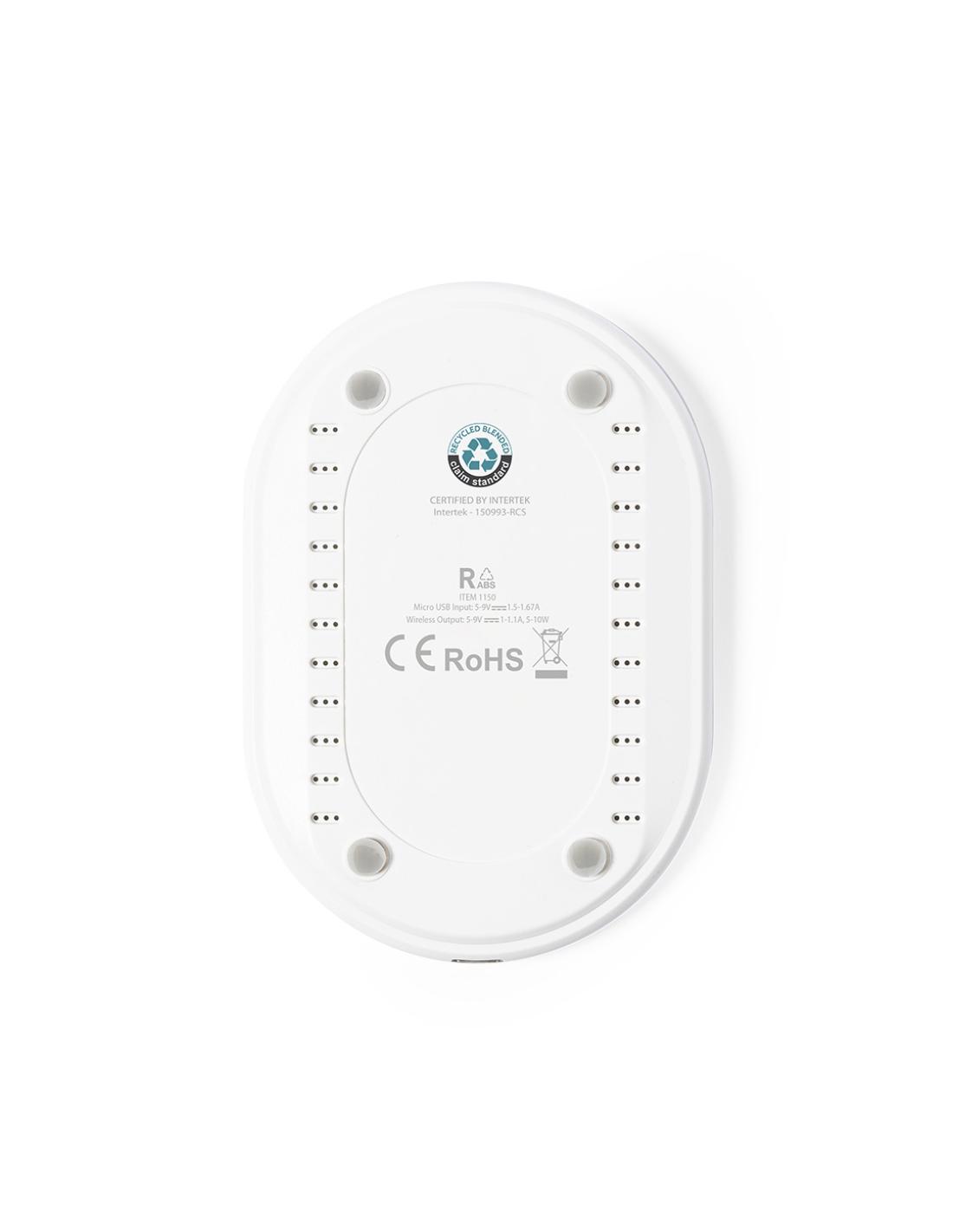 Cargador inalámbrico 10W de línea nature, con práctico diseño ovalado. Carcasa en ABS reciclado (RABS) y con certificación RCS, que garantiza el origen reciclado del mismo. Cable de carga incluido, base antideslizante y compatible con dispositivos equipados con tecnología de carga inalámbrica. Presentado en atractiva caja de diseño eco. Disponible manual de instrucciones en español e inglés.