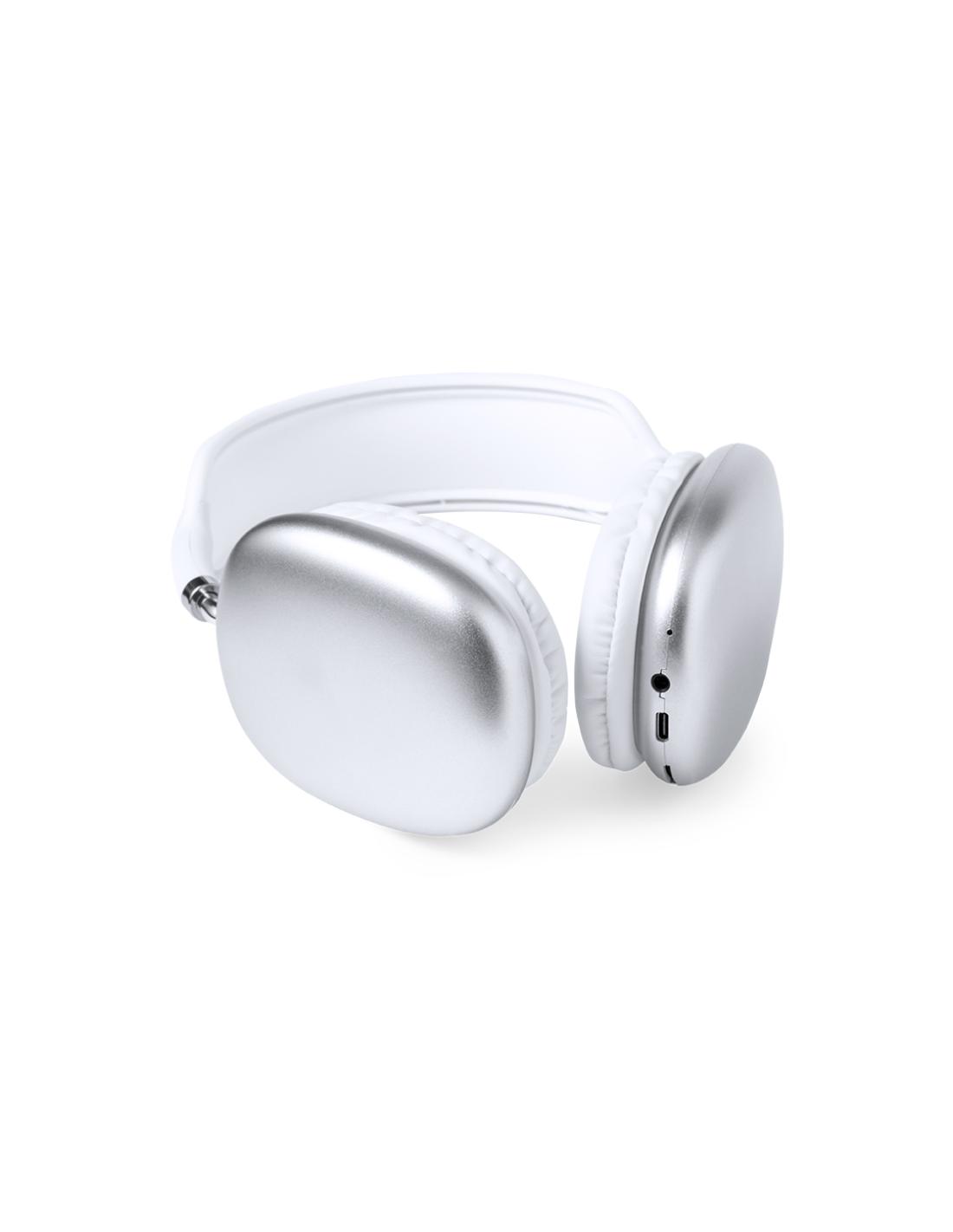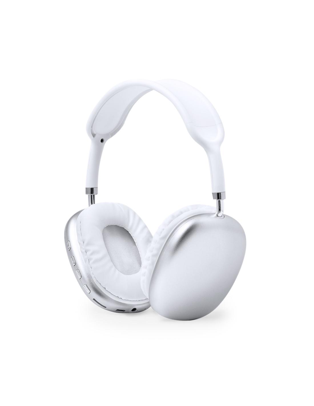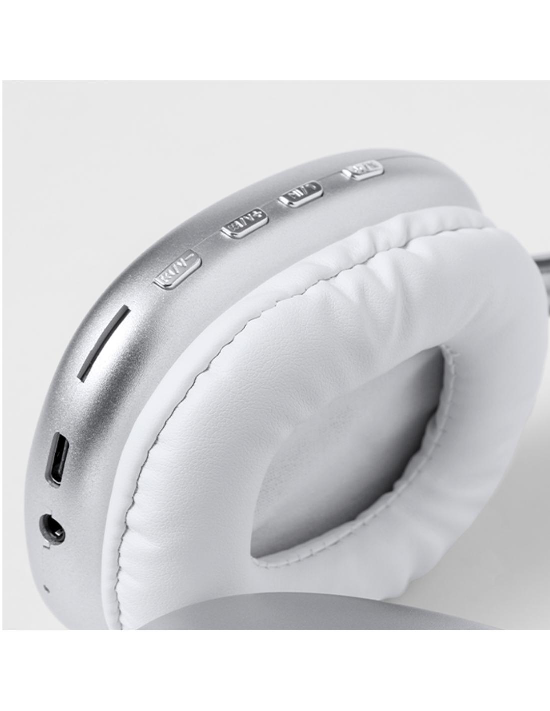 Originales auriculares de diadema con conexión Bluetooth 5.0, de diseño vanguardista y almohadillas cuadradas, en combinación de colores blanco y plateado. Panel de control integrado en el auricular, función manos libres y ranura para tarjetas microSD. Entrada de línea mediante conexión Jack de 3,5mm, incluido cable de 1m. Recargables mediante cable USB (incluido de 30 cm) y con batería de 150 mAh. Presentado en una caja individual de diseño kraft, con papel protector.