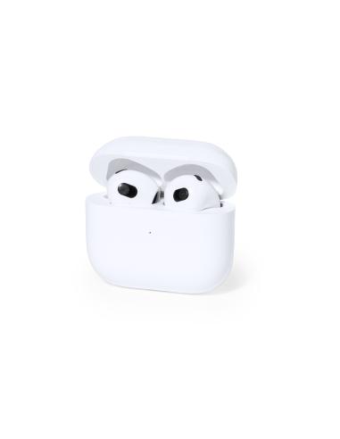 Auriculares intraurales con conexión Bluetooth 5.3 y función manos libres. De diseño ergonómico, incluyen botón de control táctil integrado en el auricular, con base de carga a juego. Batería integrada de 300 mAh y presentados en caja individual de diseño kraft. Manual de instrucciones en español e inglés.