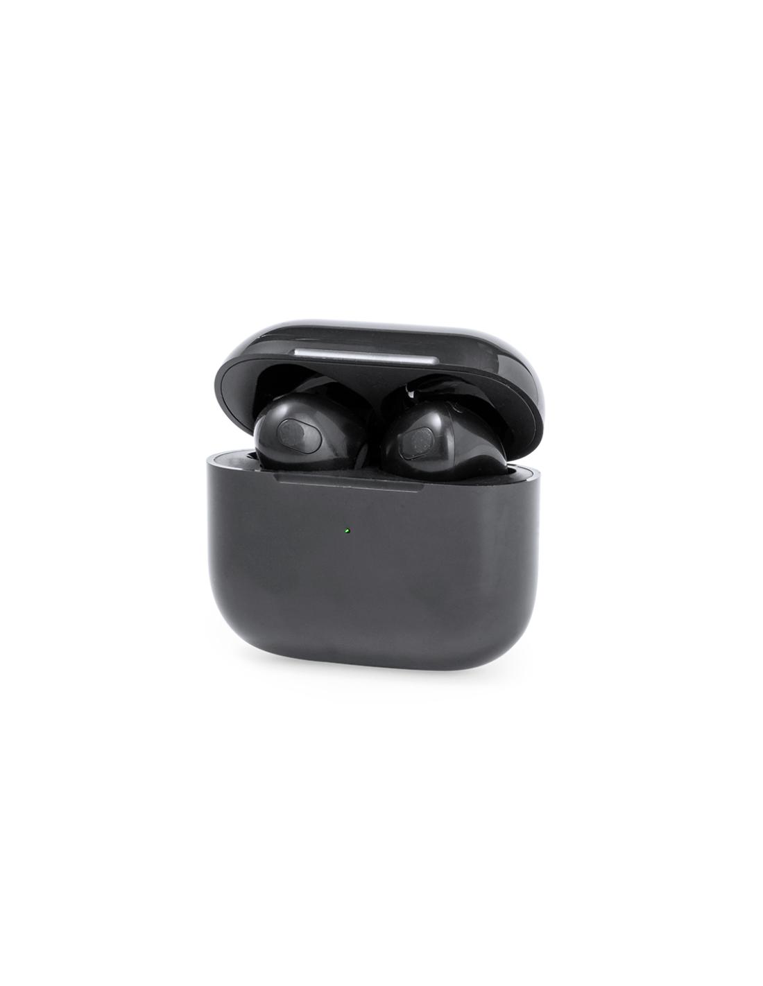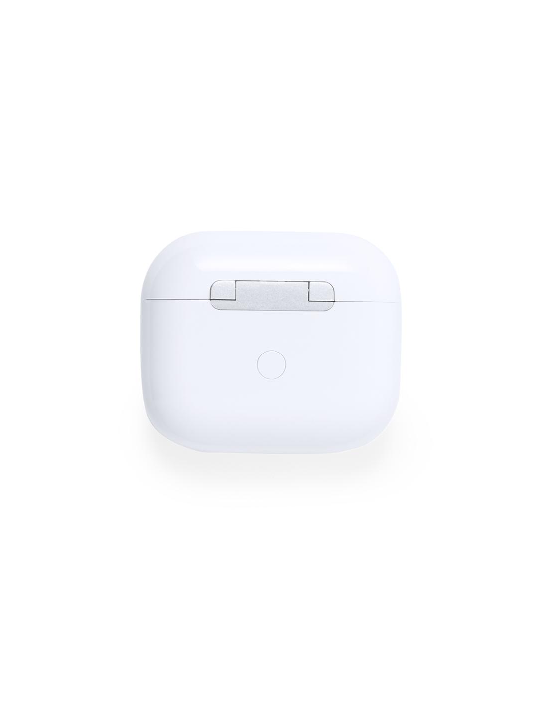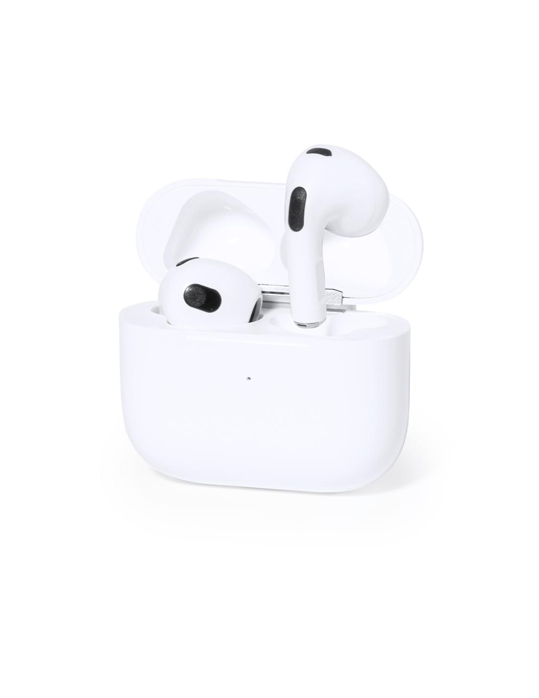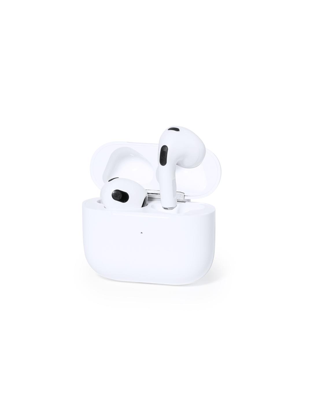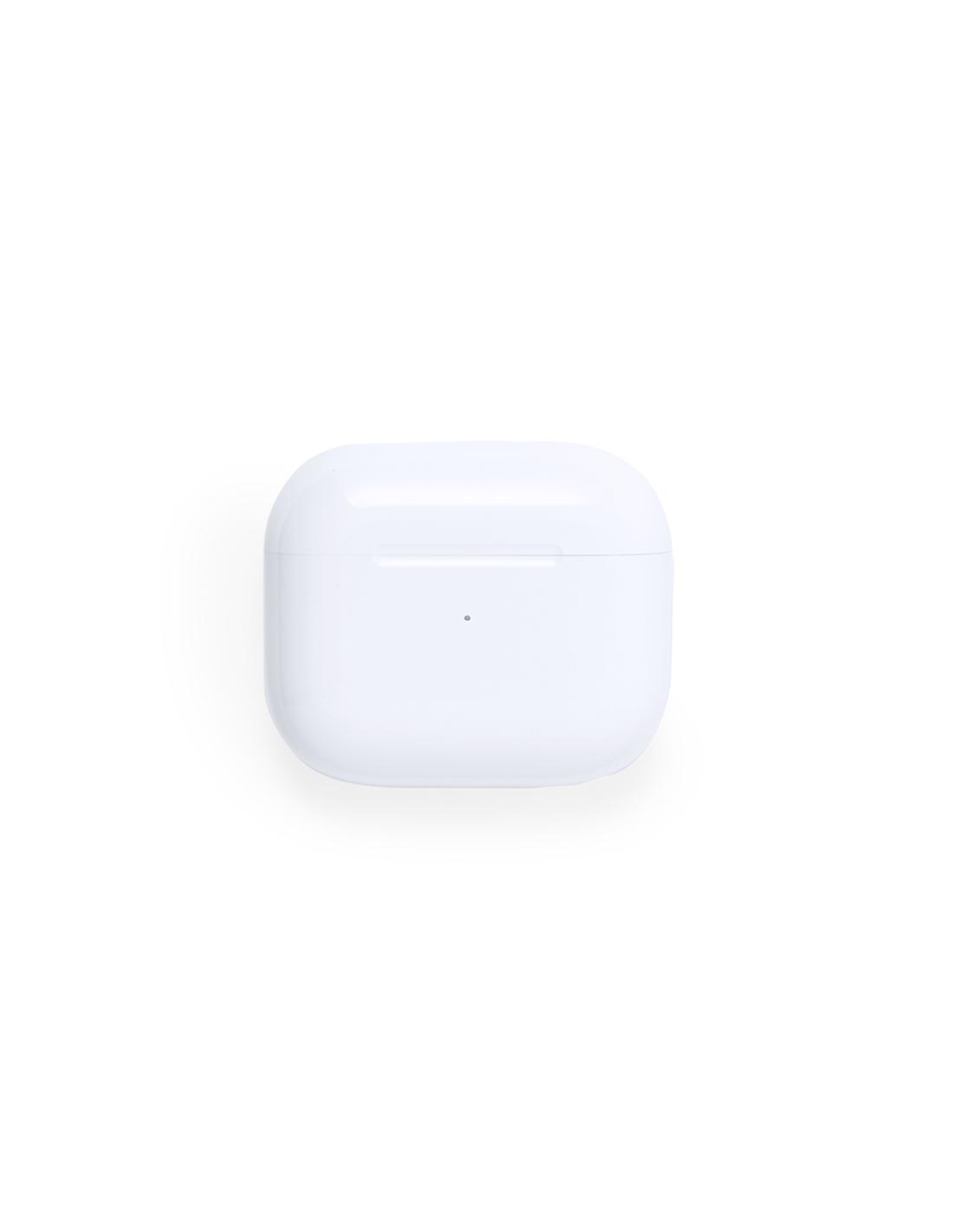 Auriculares intraurales con conexión Bluetooth 5.3 y función manos libres. De diseño ergonómico, incluyen botón de control táctil integrado en el auricular, con base de carga a juego. Batería integrada de 300 mAh y presentados en caja individual de diseño kraft. Manual de instrucciones en español e inglés.