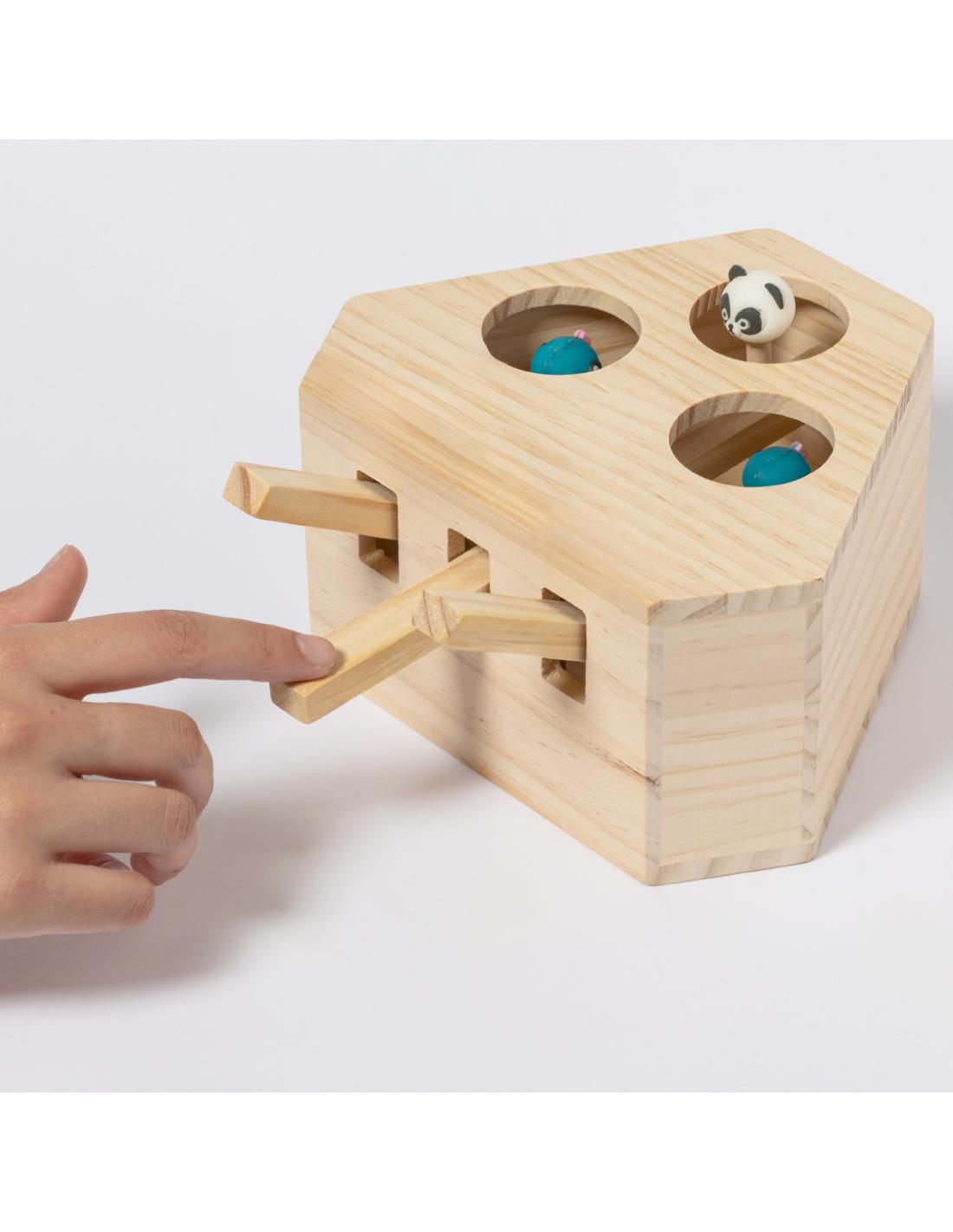 Juego para mascotas fabricado en madera. Divertido, seguro y fácil de usar: pulsando en las palancas aparecen 3 simpáticas figuras que despertarán la curiosidad de toda mascota. Presentado en caja individual kraft.