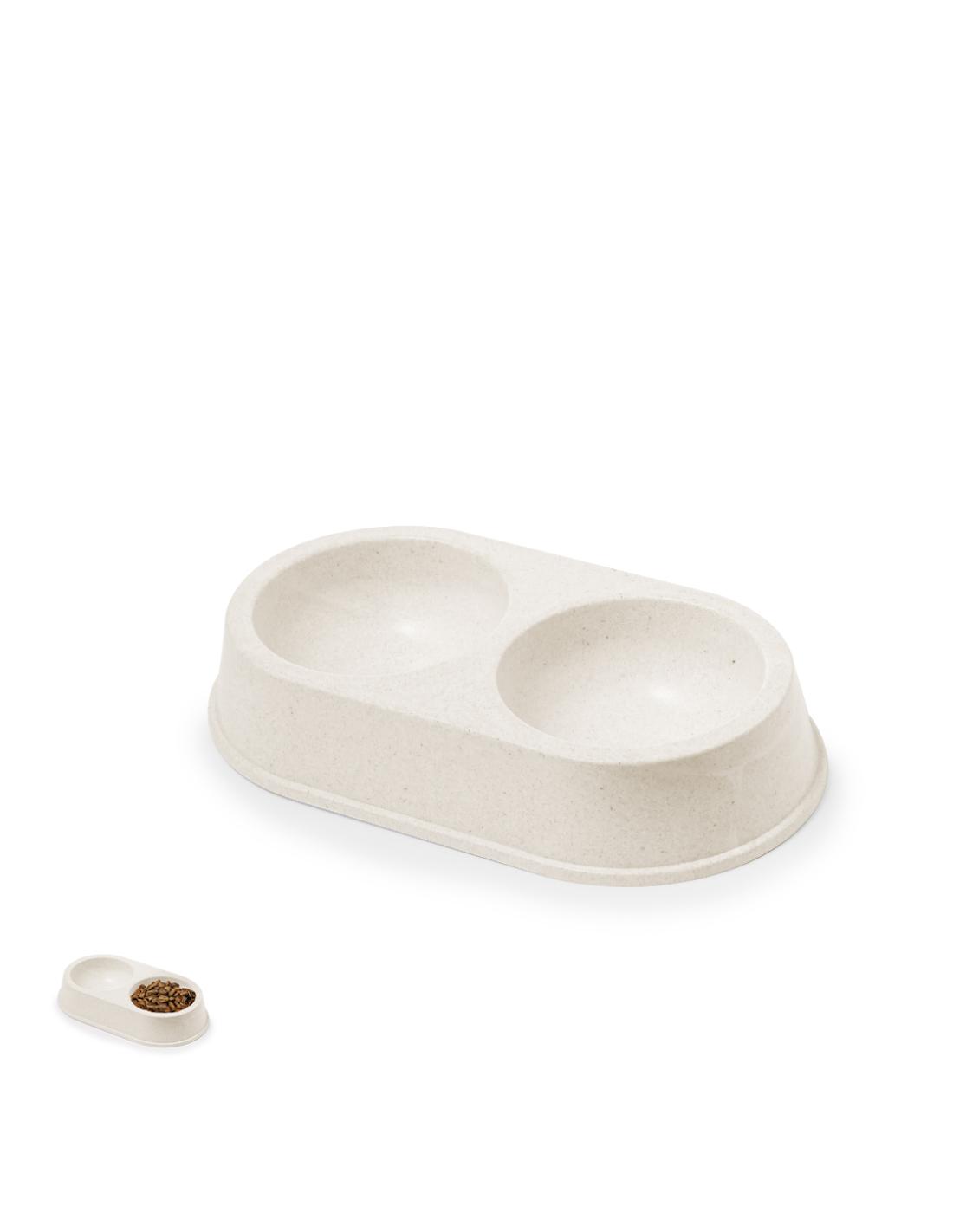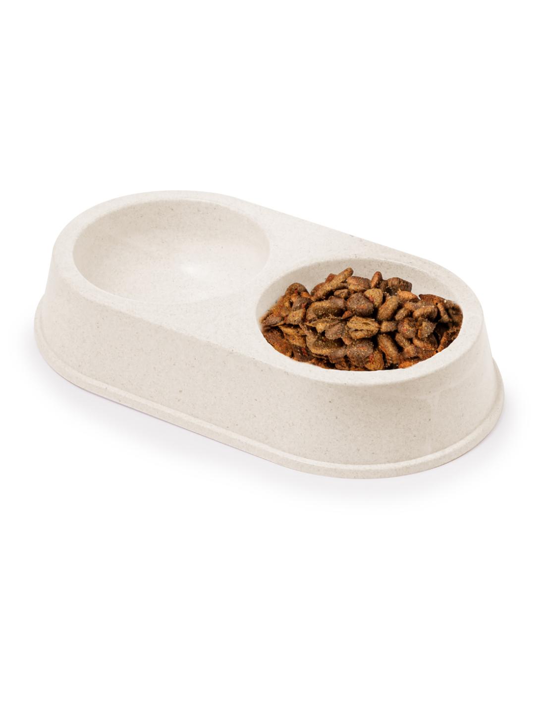 Bowl para mascotas de doble compartimento fabricado en fibra de bambú. Ideal para la alimentación de mascotas, gracias a sus dos divisiones para sólidos y líquidos. Presentado en una bolsa individual reciclada. Materiales como el bambú fomentan la utilización de materias primas naturales, reduciendo las emisiones contaminantes. Proviene de una planta de gran resistencia y versatilidad, con crecimiento y regeneración rápidos, siendo una excelente alternativa al uso de madera tradicional.