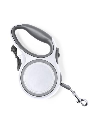 Cinta de paseo extensible de 3 metros, fabricada en resistente poliéster, con carcasa en robusto ABS. Incluye botón de freno integrado, con cómoda empuñadura ergonómica y práctico gancho para bolsas. Con mosquetón metálico de enganche giratorio y presentada individualmente en caja de diseño kraft.