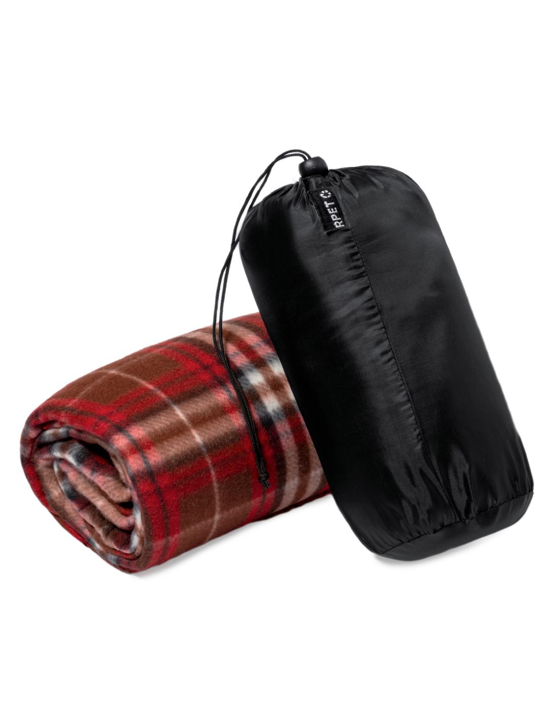 Manta fabricada en cálido poliéster RPET de 200g/m2. Medidas 120x150cm, con patrón tartán bicolor de suave tacto. Disponible en variada gama de colores. De fácil plegado y de tamaño compacto, incluye bolsa de transporte y autocierre, con logotipo RPET en etiqueta.El material RPET se elabora a partir de plástico reciclado, para así fomentar la reutilización de residuos plásticos y ayudar a la sostenibilidad del planeta.