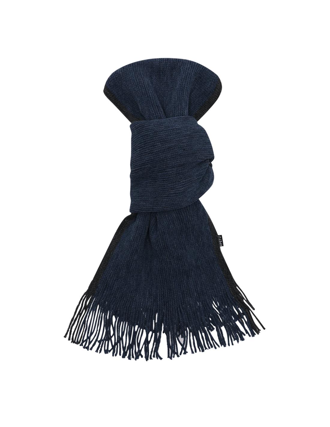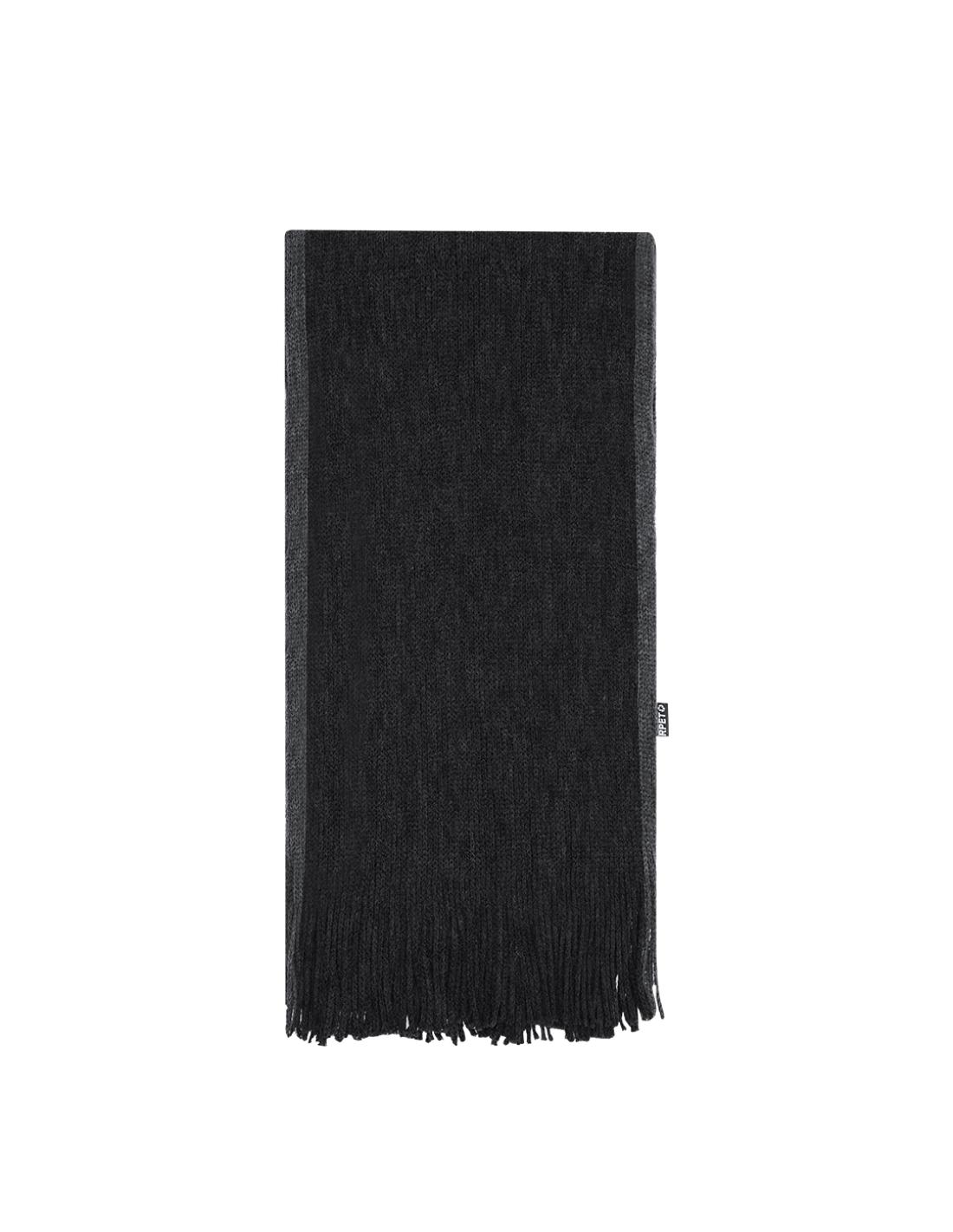 Suave y cálida bufanda confeccionada en cálido poliéster RPET. Fabricada en elegantes colores bitono con bordes en distinto color, terminación en flecos. Con logotipo RPET en etiqueta. Presentada individualmente en caja negra. El material RPET se elabora a partir de plástico reciclado, para así fomentar la reutilización de residuos plásticos y ayudar a la sostenibilidad del planeta.