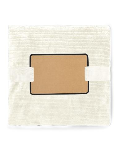 Manta fabricada en poliéster de 240g/m2, muy confortable y de tacto suave y cálido. Disponible en varios colores y presentada en cinta con lámina para fácil impresión, dentro de una bolsa individual reciclada.