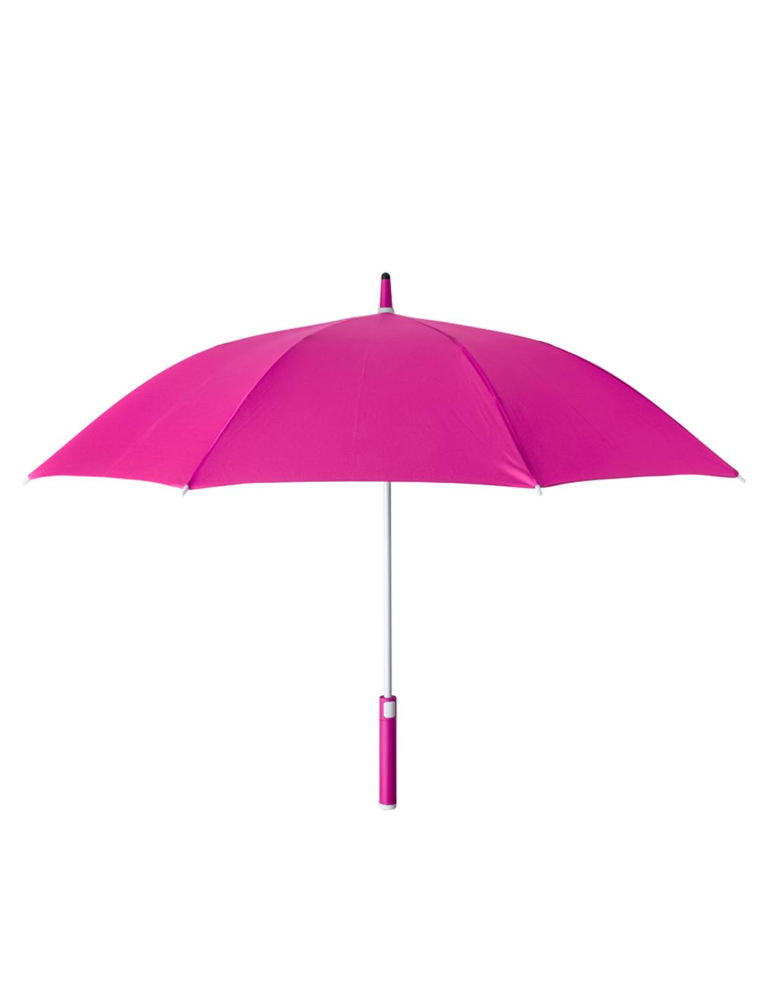 Paraguas de 105cm de diámetro en material poliéster 190T RPET. Apertura automática y varillas de fibra de vidrio antiviento, en variedad de alegres colores en cierre de velcro. Mango recto y caña en suave ABS de tacto gomoso, con etiqueta distintiva RPET.El material RPET se elabora a partir de plástico reciclado, para así fomentar la reutilización de residuos plásticos y ayudar a la sostenibilidad del planeta.