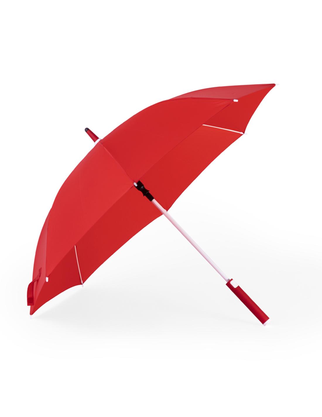 Paraguas de 105cm de diámetro en material poliéster 190T RPET. Apertura automática y varillas de fibra de vidrio antiviento, en variedad de alegres colores en cierre de velcro. Mango recto y caña en suave ABS de tacto gomoso, con etiqueta distintiva RPET.El material RPET se elabora a partir de plástico reciclado, para así fomentar la reutilización de residuos plásticos y ayudar a la sostenibilidad del planeta.