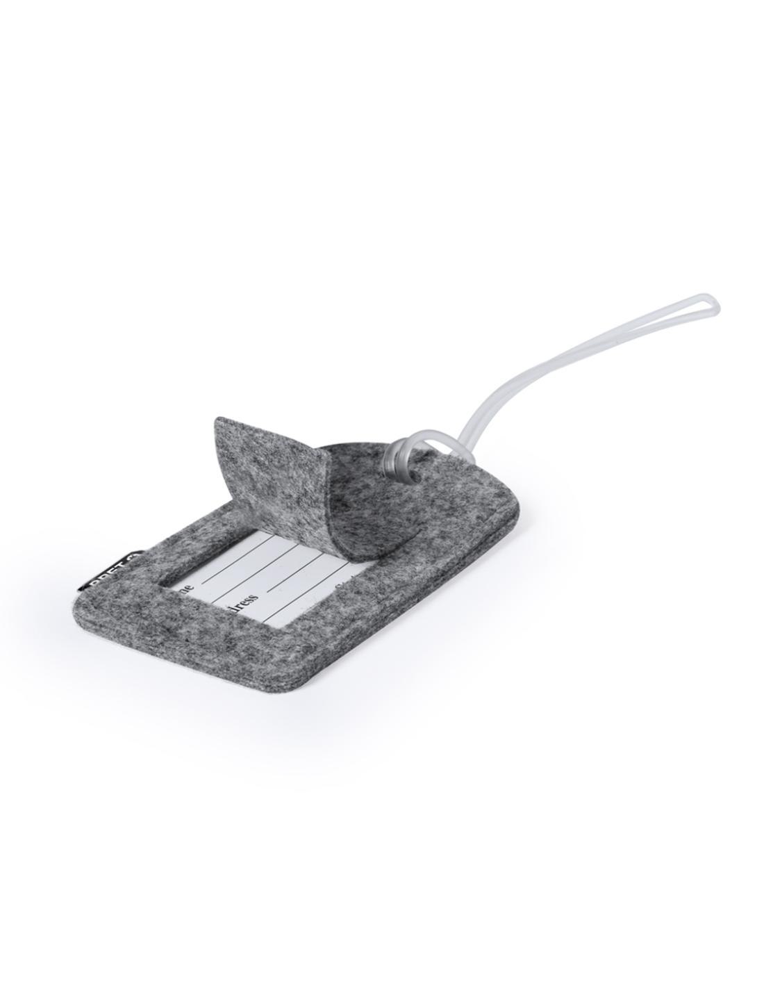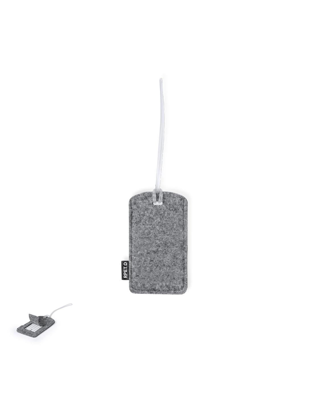 Identificador para maletas fabricado en fieltro RPET. Para amarrar a cualquier maleta gracias a su cinta flexible e indicar información básica, fabricado en fieltro RPET, con ventana y etiqueta distintiva de RPET.El fieltro RPET es fruto de la combinación del proceso de reciclaje de materiales plásticos junto con la técnica milenaria de fabricación del fieltro, dando como resultado un material de eco-tendencia que, además de ser de origen reciclado, también se convierte en reciclable.