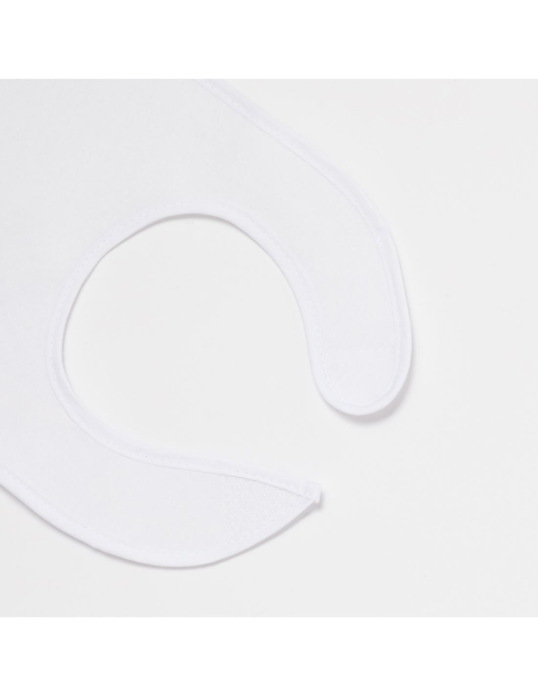 Práctico babero infantil confeccionado en algodón, con cierre de velcro para un mejor ajuste de color blanco.