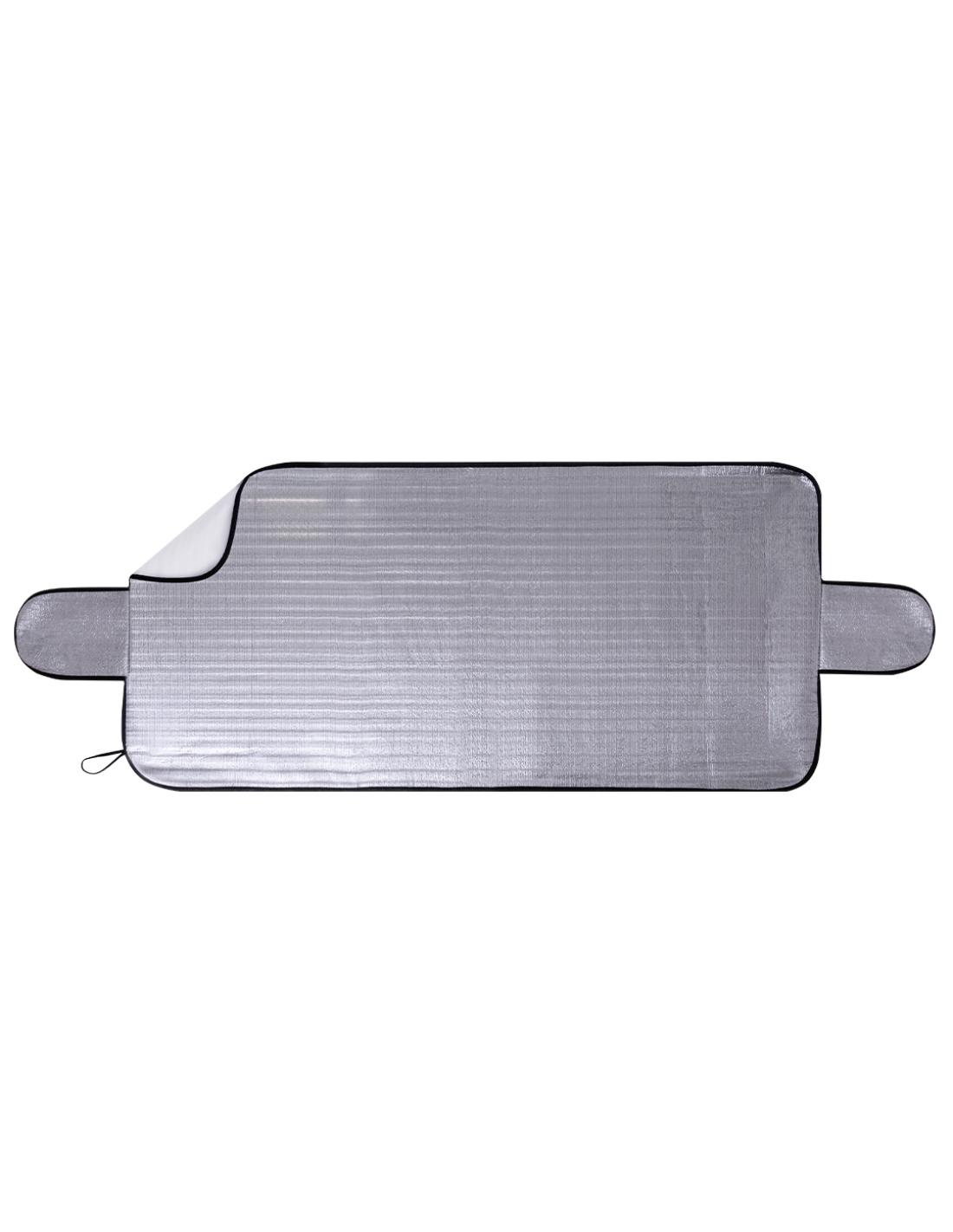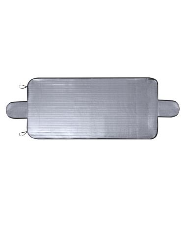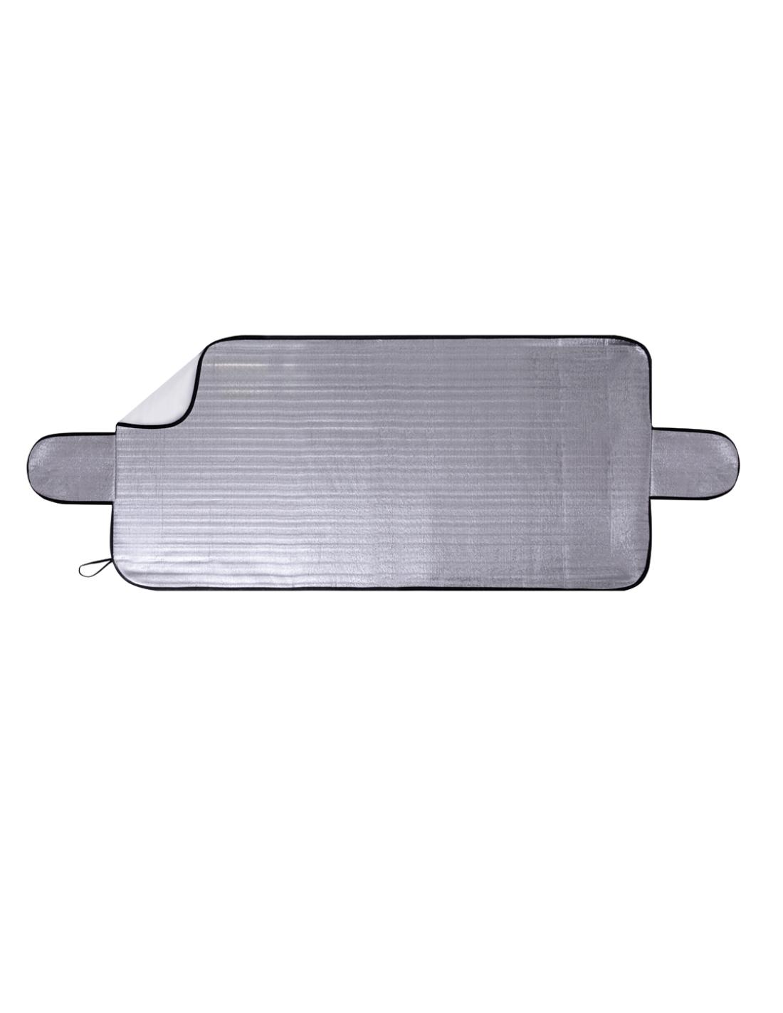 Resistente parasol de aluminio en una cara, diseñado para situarlo en el exterior de la luna delantera y como protección ante fenómenos adversos como la nieve. Incluye dos solapas laterales que se ajustan entre el marco y las puertas del vehículo, proporcionando un aislamiento adicional a la luna delantera. Enrollable y con gomas para un fácil almacenamiento.Presentado en bolsa individual reciclada.