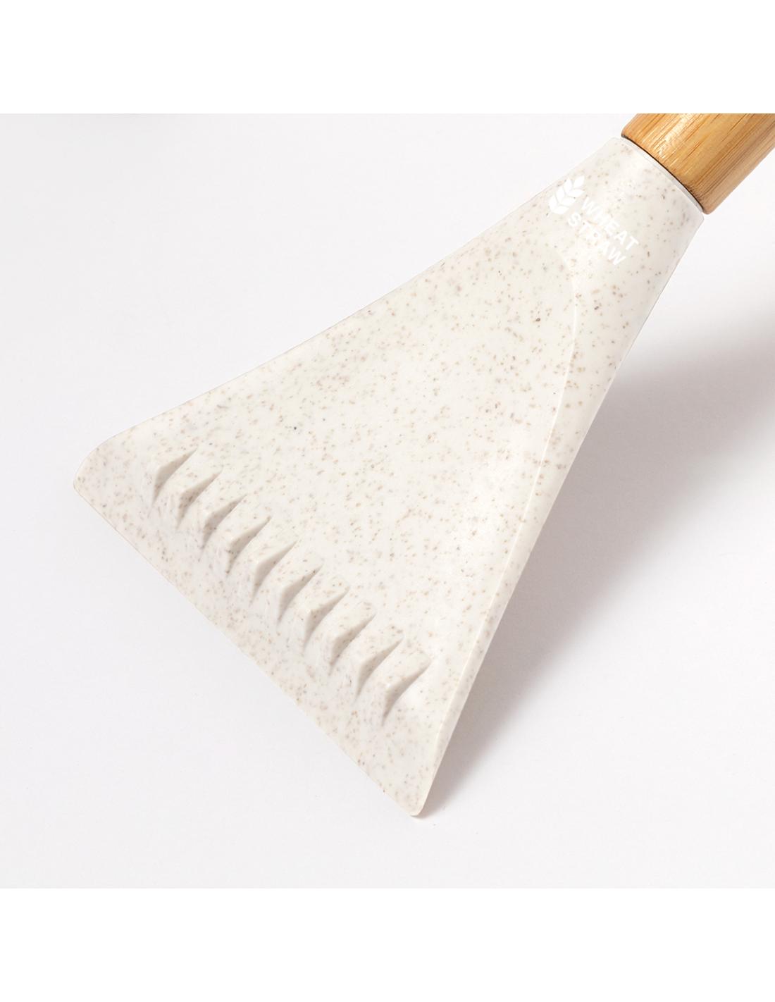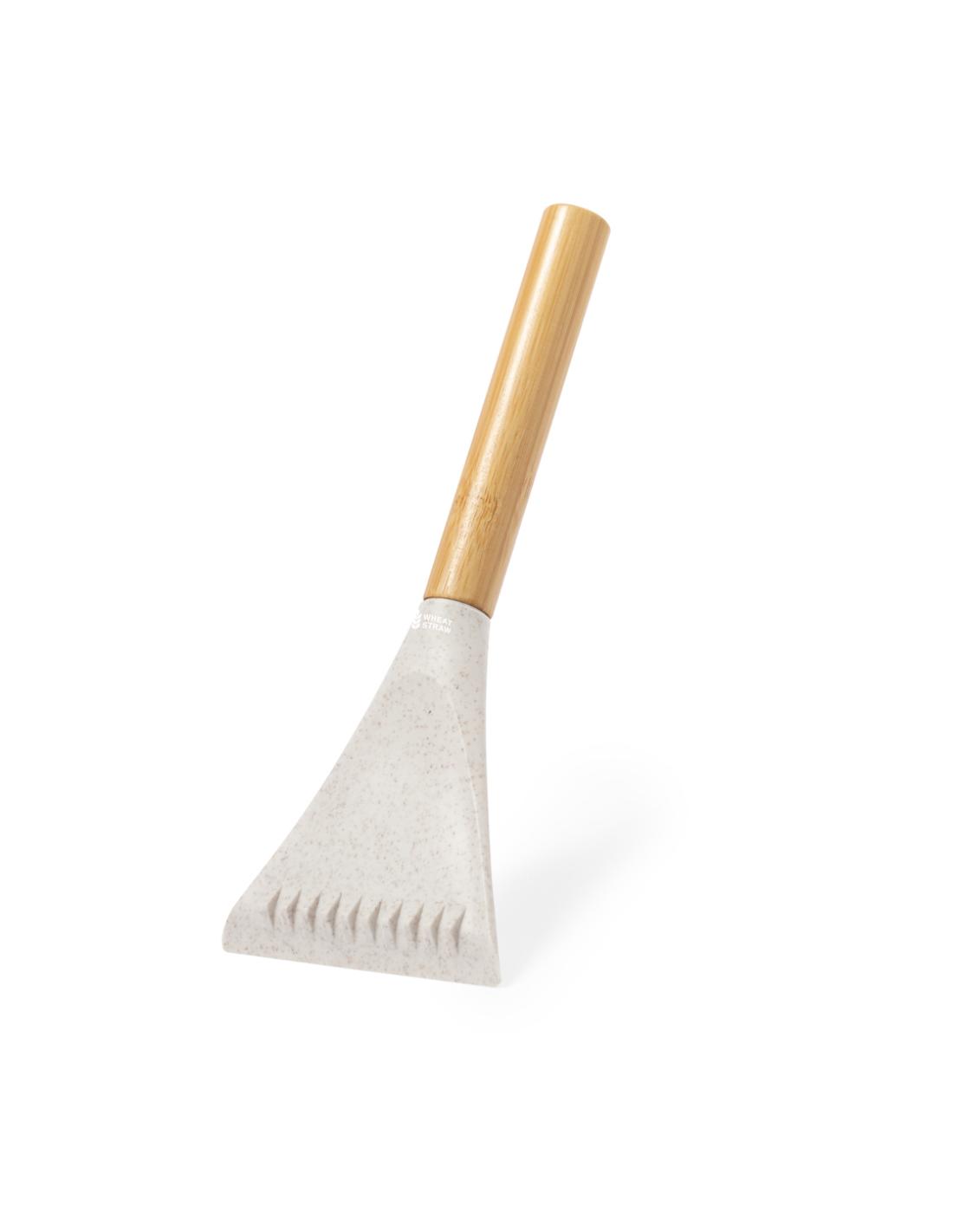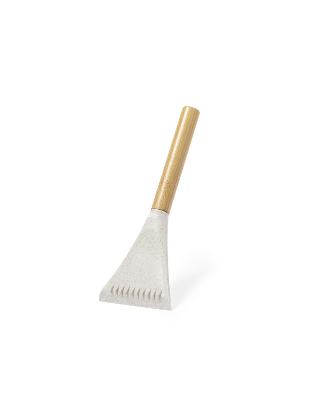Práctico rascador de hielo fabricado en bambú y caña de trigo. Con forma de pala, su mango está fabricado en bambú y la zona de rascado está hecha de caña de trigo, con parte limpiadores y sierra integrada. Logo ditintivo en el mango y presentado individualmente en bolsa de papel kraft.Materiales como el bambú fomentan la utilización de materias primas naturales, reduciendo las emisiones contaminantes. Proviene de una planta de gran resistencia y versatilidad, con crecimiento y regeneración rápidos, siendo una excelente alternativa al uso de madera tradicional.La caña de trigo fomenta la utilización de materias primas naturales, reduciendo así las emisiones contaminantes.