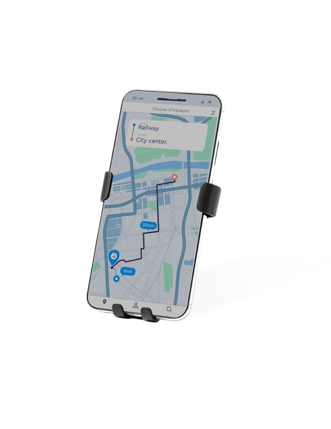 Ingenioso soporte para smartphone de diseño minimalista y especialmente diseñado para smartphones tamaño XXL. Elegante diseño negro con detalles en bambú, con sistema de fijación universal que se adapta por el propio peso del teléfono, ajustando las pinzas de agarre una vez que se sitúa el dispositivo en el soporte, con base rotatoria 360º. Para rejilla de ventilación del automóvil y con frontal especialmente diseñado para marcaje. Presentado en caja de diseño kraft. Materiales como el bambú fomentan la utilización de materias primas naturales, reduciendo las emisiones contaminantes. Proviene de una planta de gran resistencia y versatilidad, con crecimiento y regeneración rápidos, siendo una excelente alternativa al uso de madera tradicional.