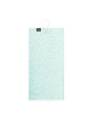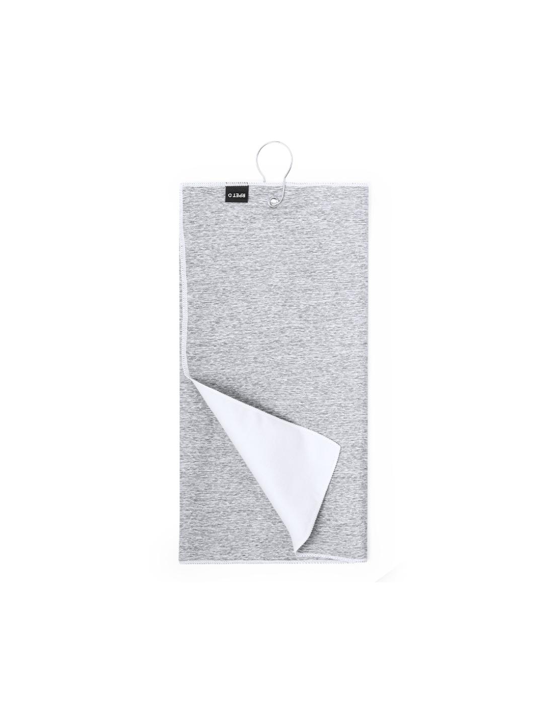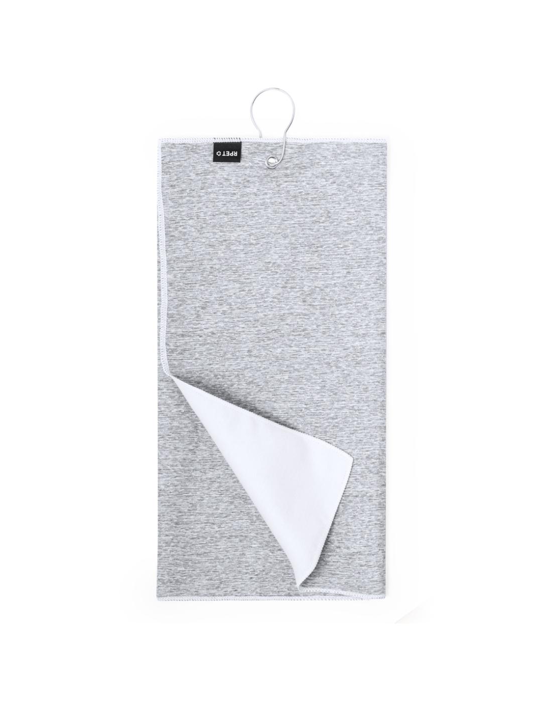 Toalla de golf fabricada en RPET, absorbente y suave con dimensiones de 40x60 cm. En el centro, incorpora una argolla reforzada y un mosquetón de acople, ambos elaborados en acero inox. Con logotipo RPET en etiqueta.El material RPET se elabora a partir de plástico reciclado, para así fomentar la reutilización de residuos plásticos y ayudar a la sostenibilidad del planeta.