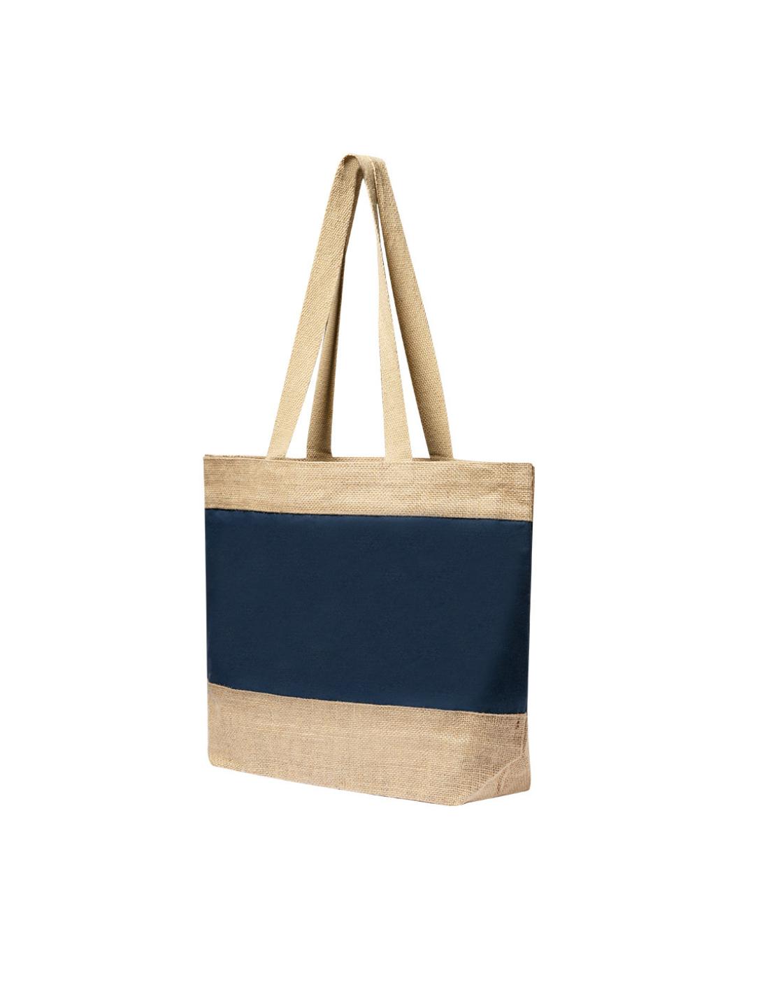 Bolsa en resistente combinación de yute laminado y algodón laminado, con asas de algodón natural. De acabado cosido, con asas largas reforzadas y disponible en amplia gama de colores. Resistencia hasta 10kg de peso.