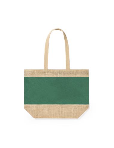 Bolsa en resistente combinación de yute laminado y algodón laminado, con asas de algodón natural. De acabado cosido, con asas largas reforzadas y disponible en amplia gama de colores. Resistencia hasta 10kg de peso.