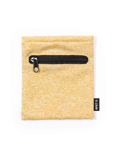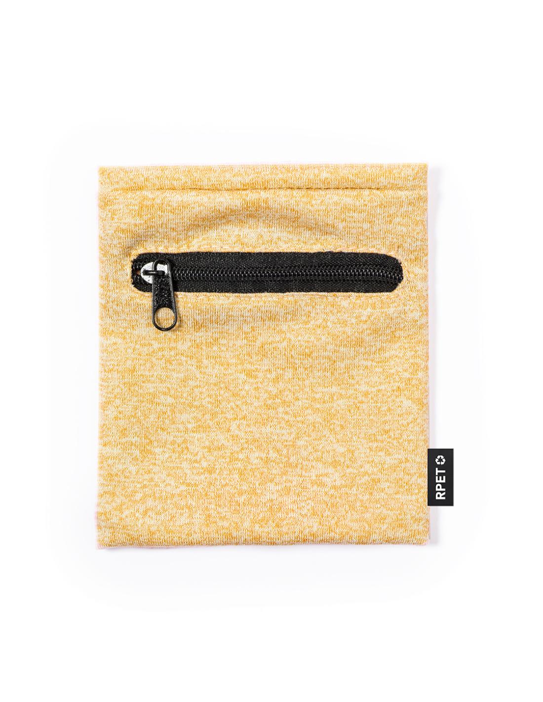 Práctica muñequera en suave poliéster RPET. Complemento perfecto para guardar pequeños objetos gracias a su bolsillo con cierre de cremallera negra. Disponible en variada gama de colores, con etiqueta distintiva RPET.El material RPET se elabora a partir de plástico reciclado, para así fomentar la reutilización de residuos plásticos y ayudar a la sostenibilidad del planeta.