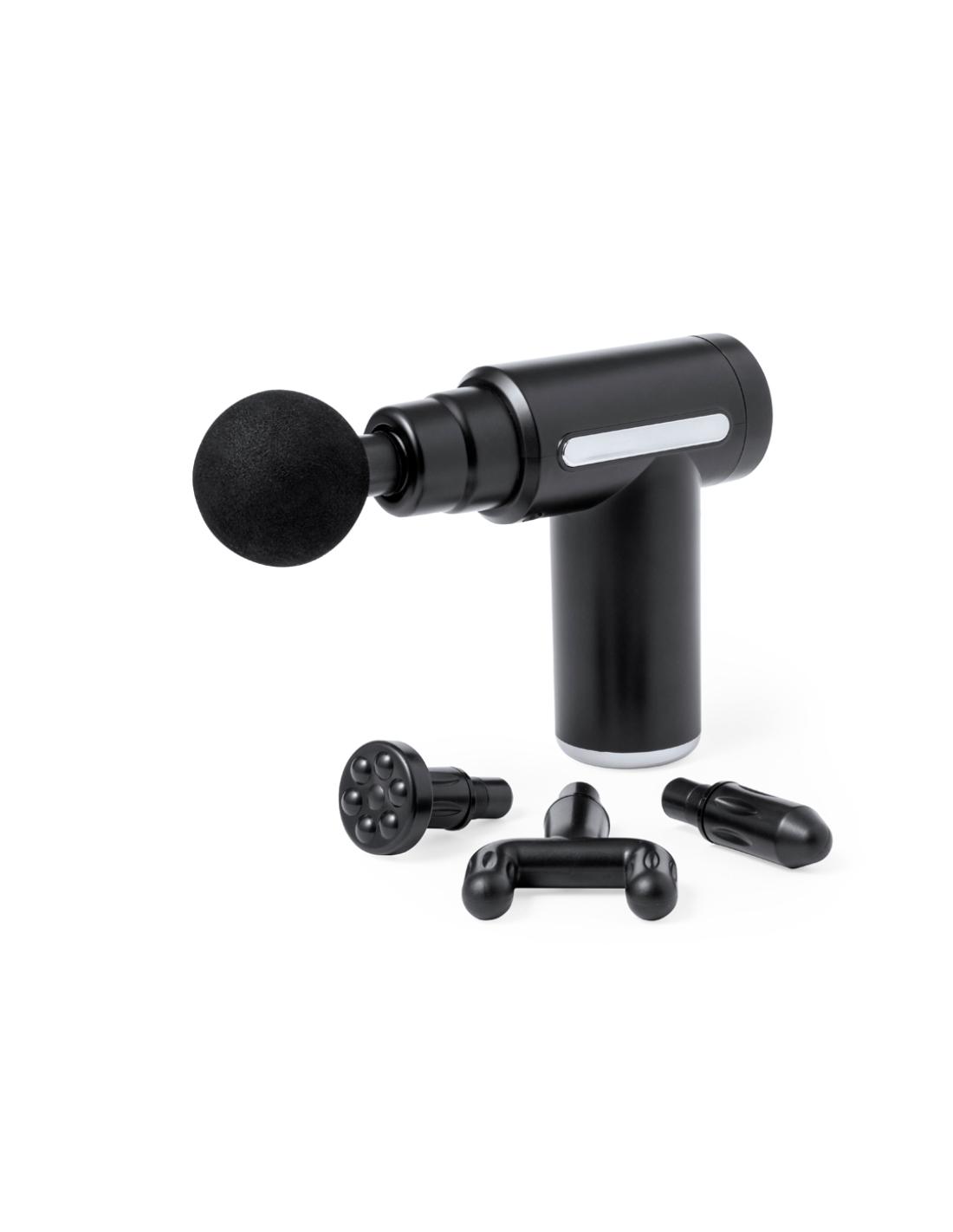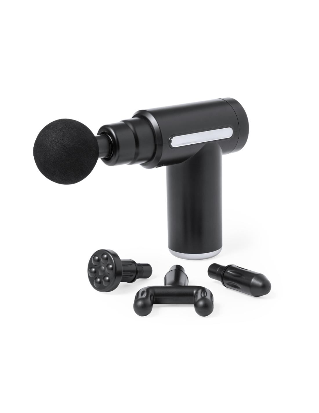 Masajeador eléctrico. Ayuda a relajar los músculos, aliviar los efectos del entrenamiento, liberar tensión y revitalizar el cuerpo. Con dos posiciones de intensidad y 4 cabezales para usar en distintas zonas del cuerpo. Batería recargable de larga duración de 1200 mAh - cable de carga USB incluido-. Disponible manual de instrucciones en español e inglés.