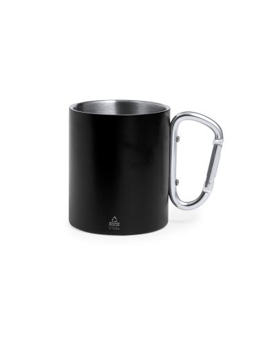 Taza doble pared en Acero Inox Reciclado de 300 ml. Con asa en forma de mosquetón para fácil transporte y cuerpo en variados colores mate. Presentada en caja de diseño kraft.El acero es uno de los materiales más demandados y que puede encontrarse casi en todas partes, desde productos de uso diario a grandes construcciones. Con innumerables propiedades, entre las que cabe destacar la durabilidad y su alto grado de reutilización, convirtiéndolo en una alternativa muy valorada en soluciones de sostenibilidad. Debidamente tratado, permite obtener nuevos recursos de infinita utilización.