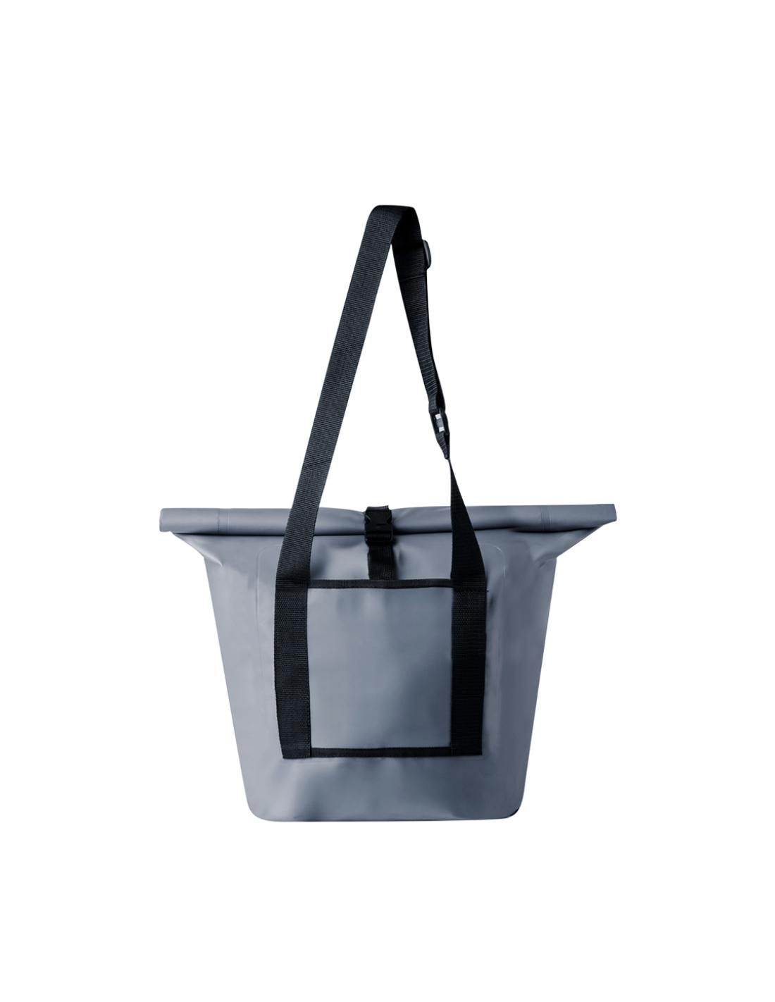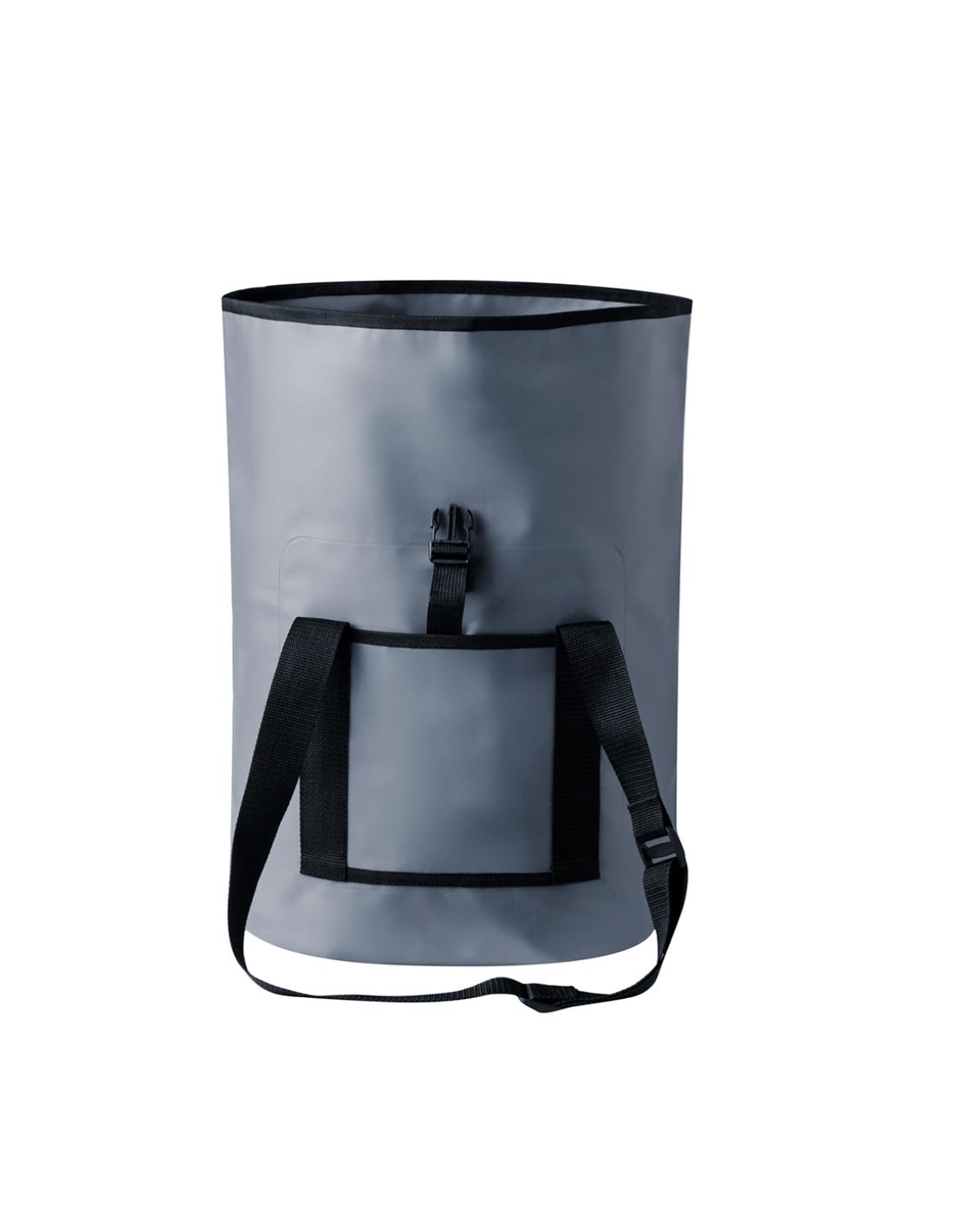 Bolso impermeable de 25L de capacidad, confeccionado en resistente PVC. Compartimento principal con cierre de hebilla y asas ajustables para un cómodo transporte. Incluye bolsillo frontal abierto de fácil acceso. En elegante color gris con detalles en negro y presentado en bolsa individual reciclada.