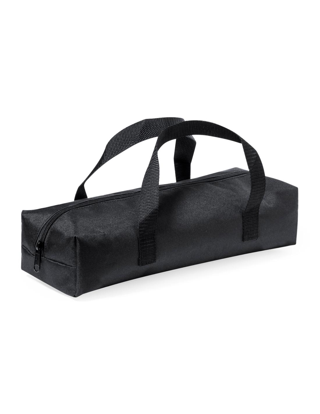 Set de barbacoa fabricado en acero inox. Consta de 11 accesorios, entre ellos: 1 espátula lisa, 2 espátulas con agujeros, 1 raspadora, 1 pinza, 1 espátula, 1 salero, 1 pimentero, 1 bidón con dosificador y 2 moldes redondos. Todo se presenta de manera organizada en un práctico macuto con cierre de cremallera y asas para facilitar su transporte. Presentado individualmente en bolsa reciclada.