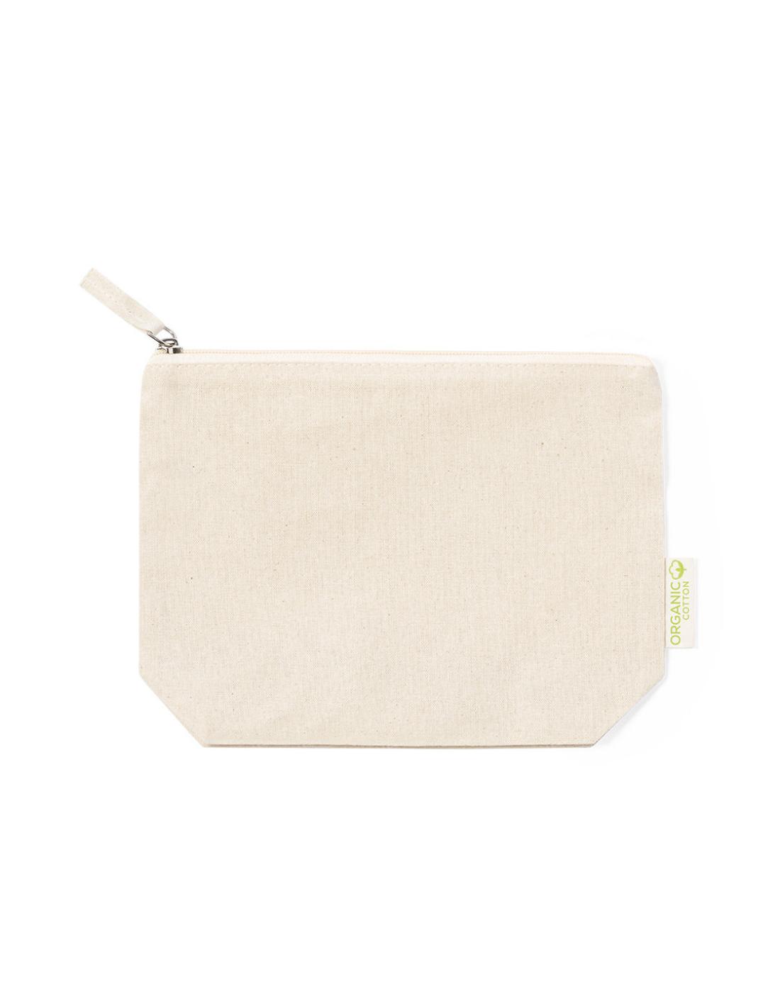 Neceser fabricado en material100% algodón orgánico de 175g/m2 y en tono natural. Cierre de cremallera con tirador a juego y distintivo eco en etiqueta exterior. Incluye hangtag de cartón reciclado con distintivo eco.