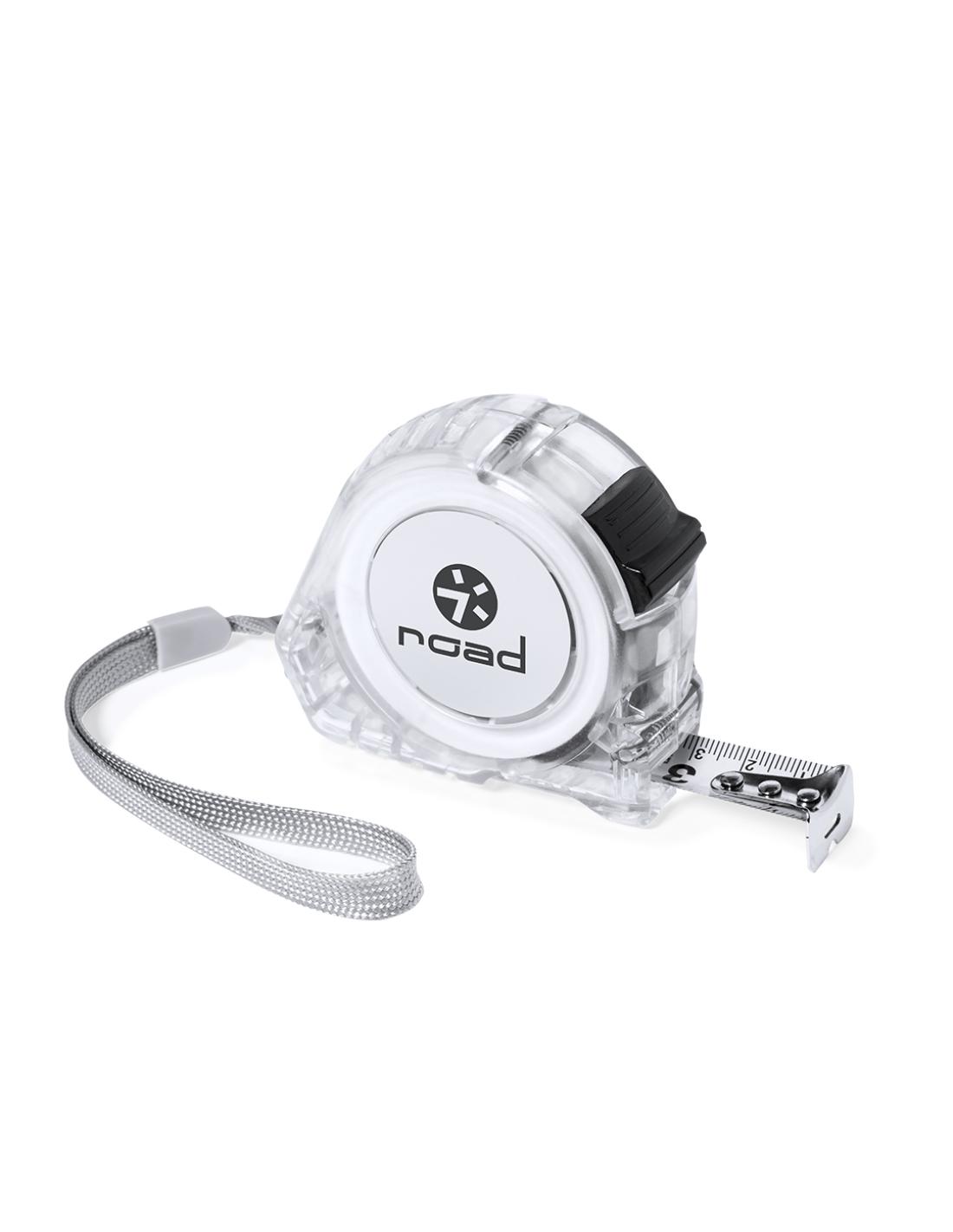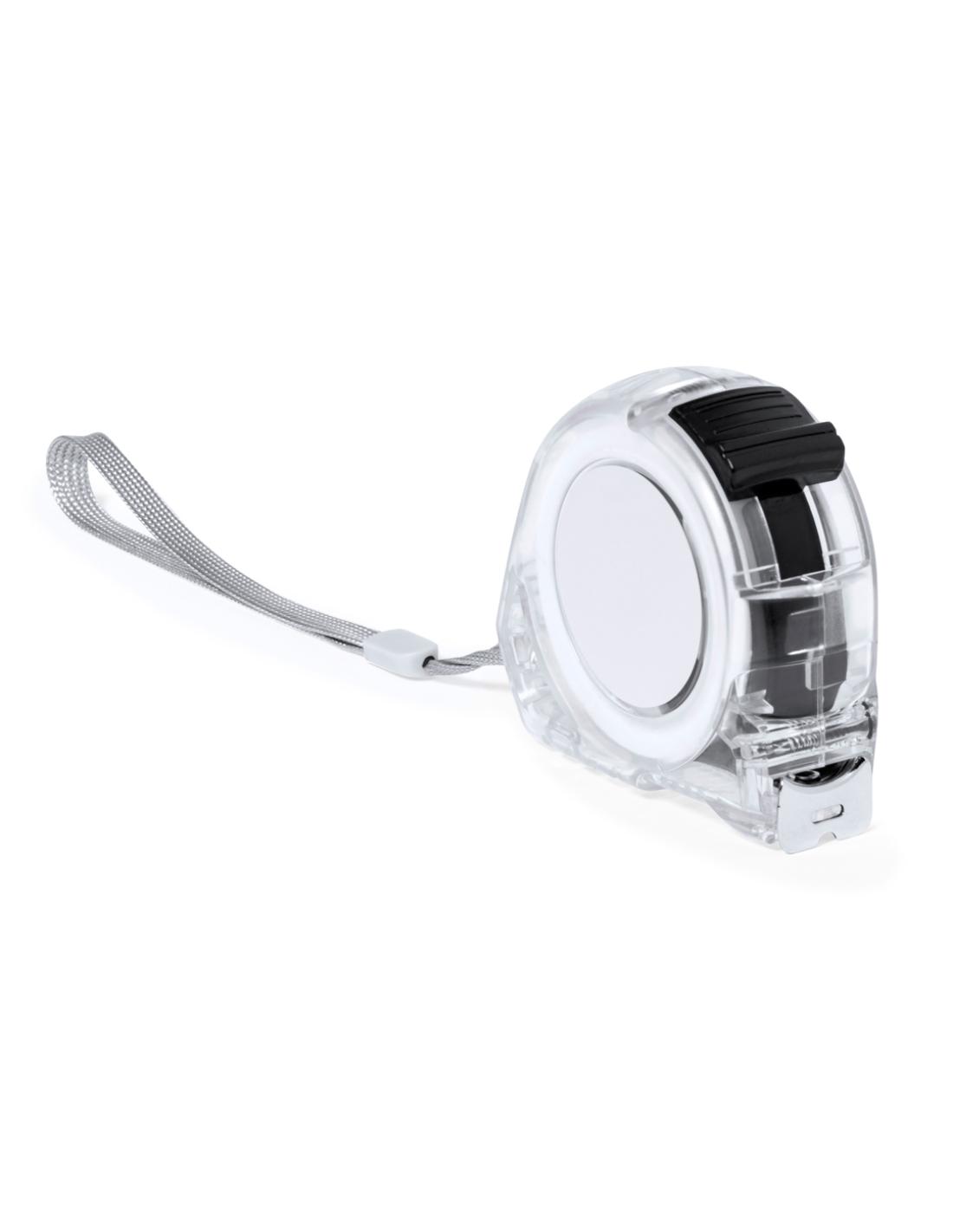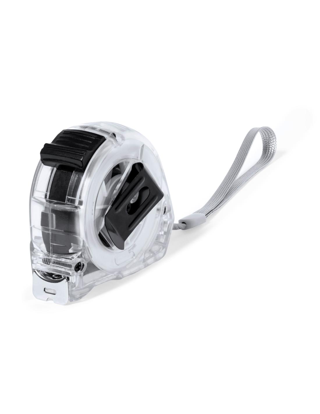 Flexómetro de 5 metros con cuchilla metálica y mecanismo de bloqueo. Con cuerpo en original acabado transparente, clip metálico para cinturón y cinta de transporte, con zona especial de marcaje. Presentado individualmente en caja de diseño kraft.