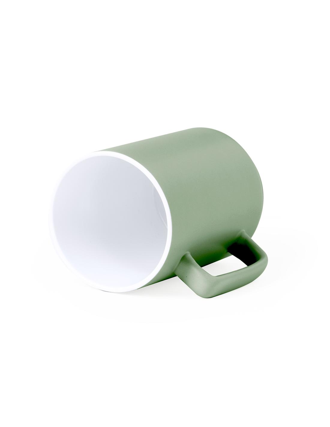 Taza de cerámica con 420 ml de capacidad. Distinguido diseño con asa cuadrada en combinación de interior en color blanco y exterior en variada gama de colores mate. Presentada en caja individual acabado kraft.