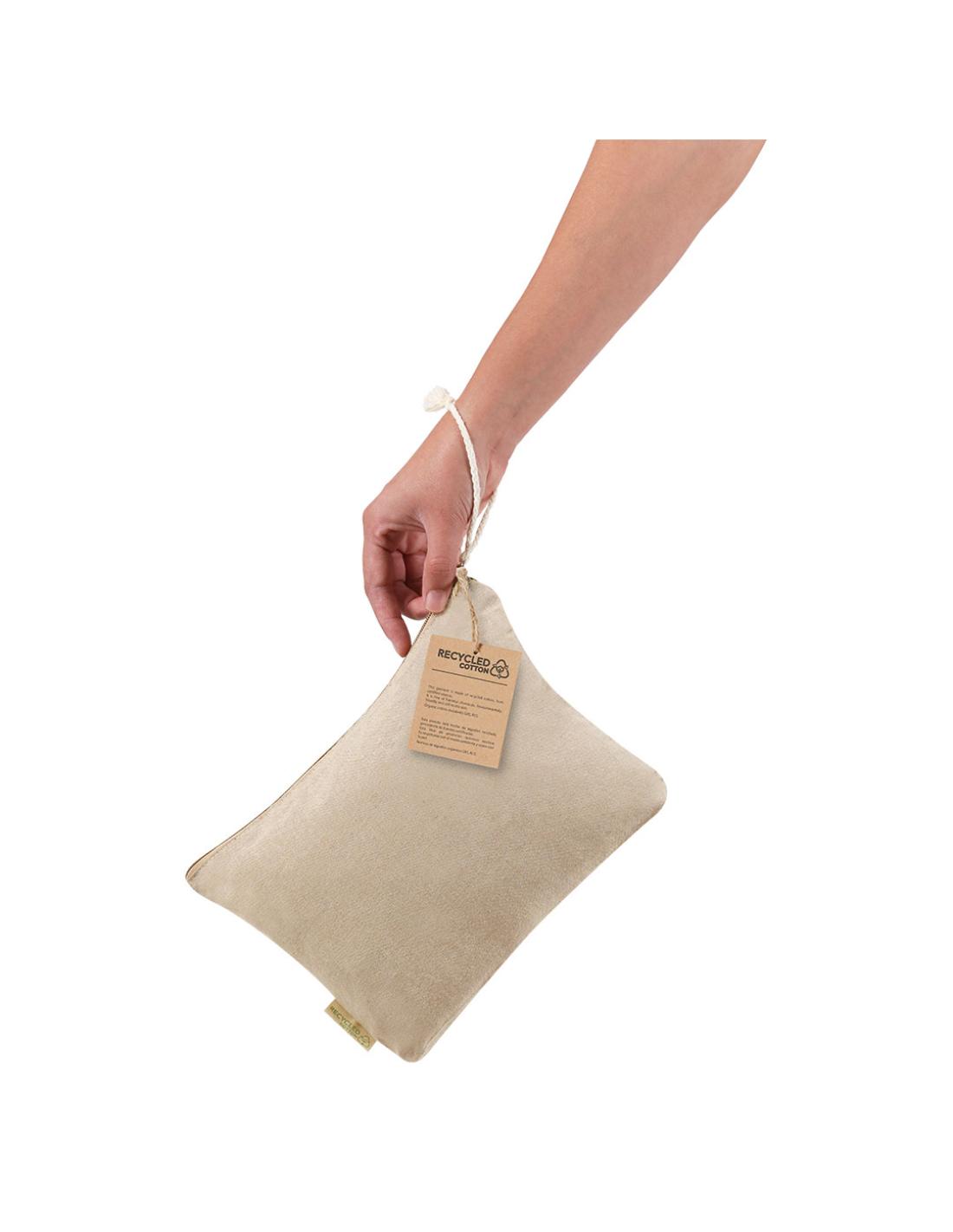 Neceser fabricado en 100% algodón reciclado en elegante tono natural. Compartimento principal con cierre de cremallera y cordón de transporte a juego. Incluye etiqueta exterior con logotipo algodón reciclado.