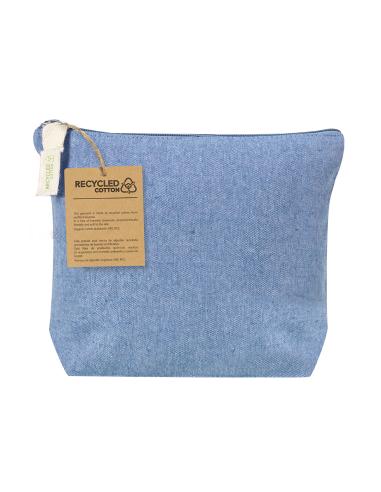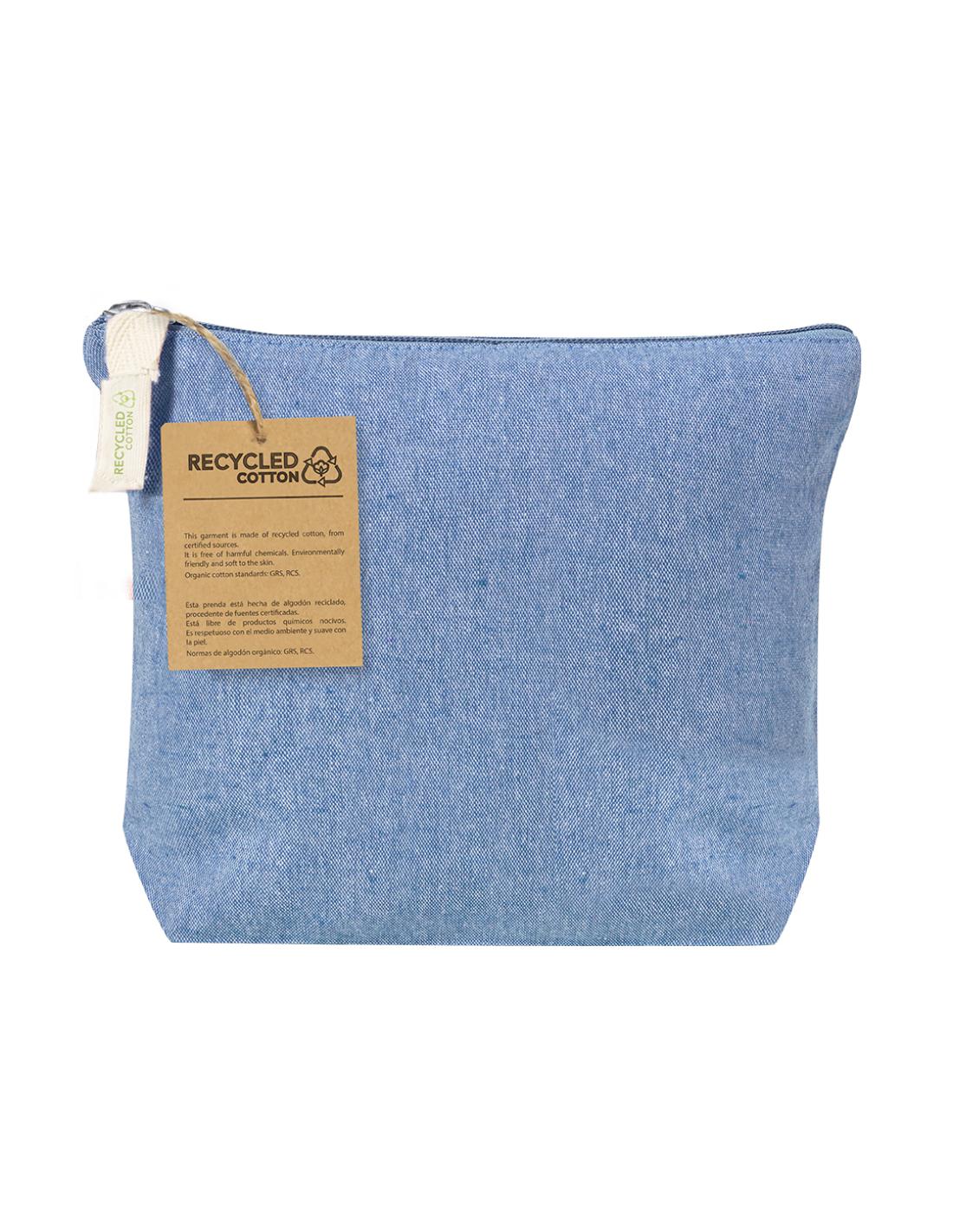 Estuche elaborado en algodón reciclado. Compartimento principal de cierre de cremallera y tirador de color natural. Disponible en variada gama de vivos colores. Con logotipo algodón reciclado en etiqueta y presentado en bolsa individual reciclada.