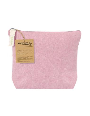 Estuche elaborado en algodón reciclado. Compartimento principal de cierre de cremallera y tirador de color natural. Disponible en variada gama de vivos colores. Con logotipo algodón reciclado en etiqueta y presentado en bolsa individual reciclada.