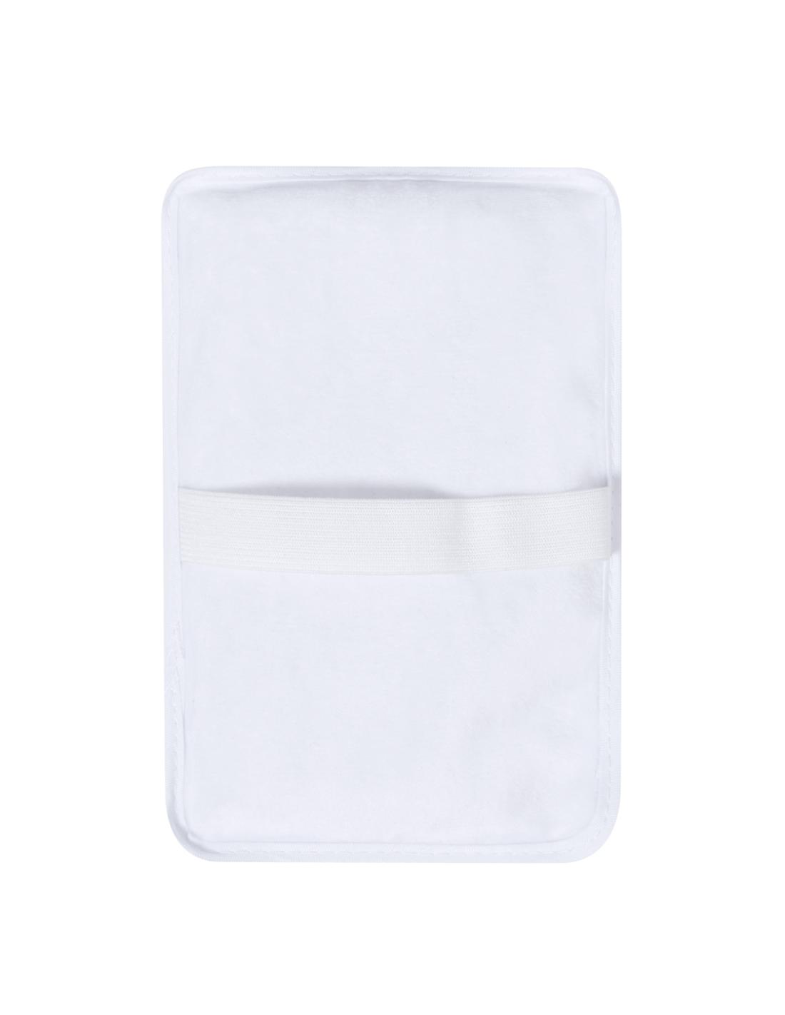 Parche térmico reutilizable con efecto frío o calor. El efecto frío se consigue introduciéndolo en el frigorífico entre 2-3 horas, mientras que el efecto calor en requiere del microondas. Reutilizable gracias a las perlas de gel ubicadas en su interior, y con cinta ajustable a la palma de la mano de forma rectangular. Presentación individual en una bolsa de papel reciclado.