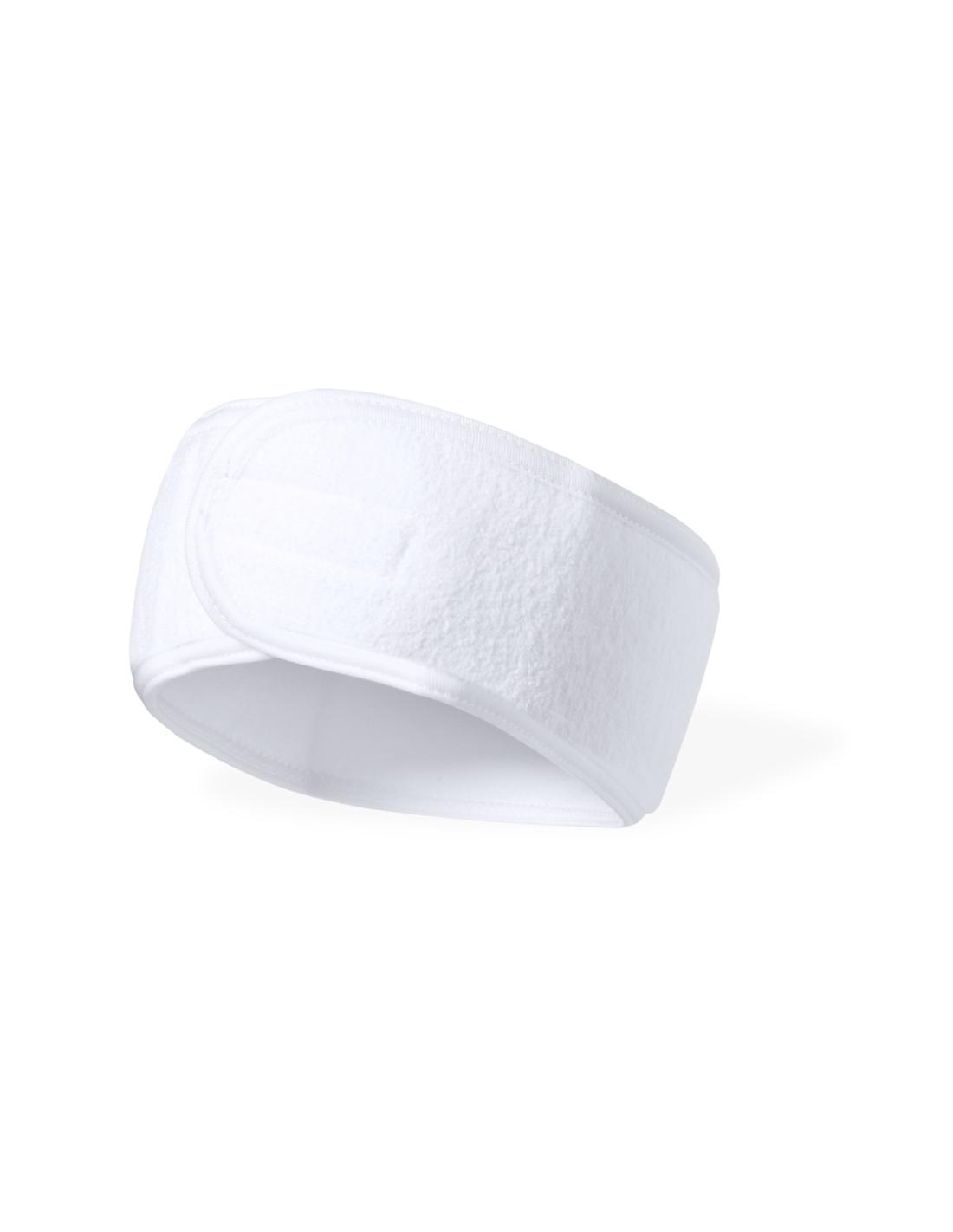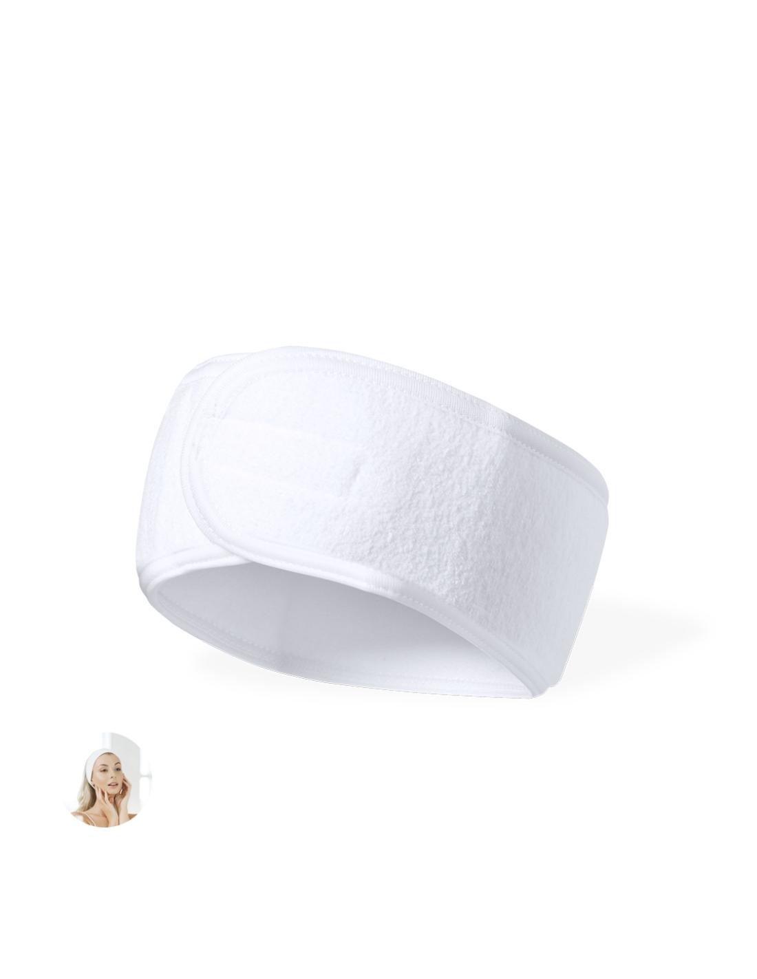 Cinta para pelo fabricada en suave poliéster. Banda ajustable a la cabeza con velcro para despejar el pelo de la cara mientras se aplican los tratamientos beauty.