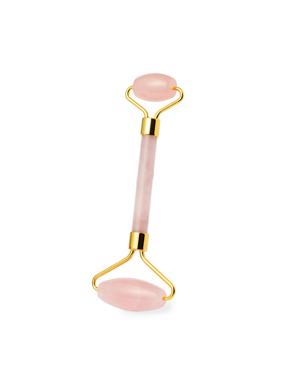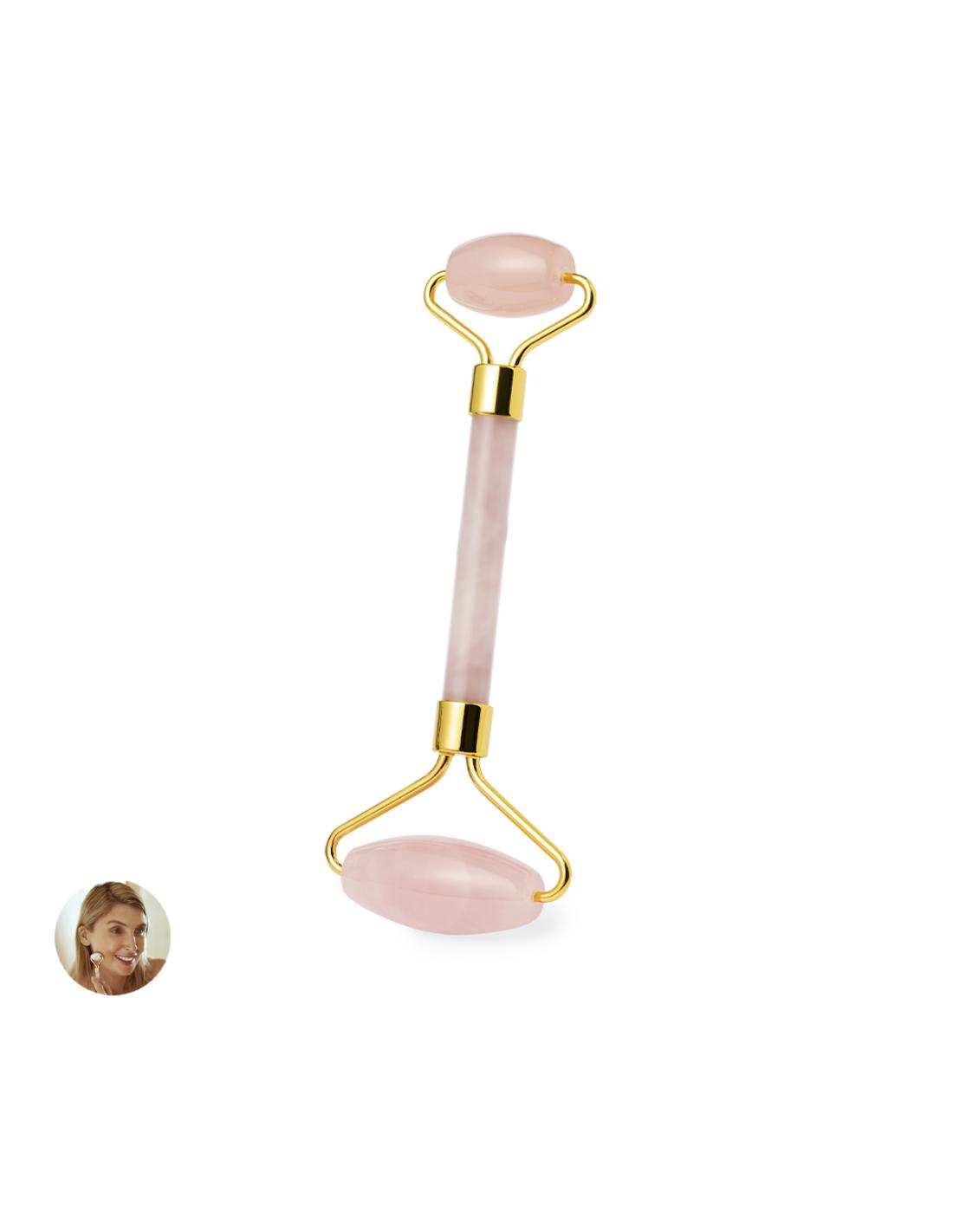 Rodillo facial de alta calidad fabricado en piedra jade rosa. Agradable masajeador de mano para el rostro, con cilindros faciales fabricados en suave piedra pulida. Ayuda a reducir la hinchazón y aporta brillo a la piel refinando los poros, eliminando toxinas y mejorando la elasticidad de la piel gracias a su efecto calmante. Presentado en una caja individual negra.