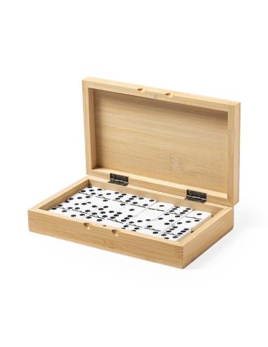 Dominó clásico de 28 piezas fabricadas en resistente melamina. Presentado en estuche individual de bambú lacado, con cierre imantado. Presentado en atractiva caja individual de diseño.