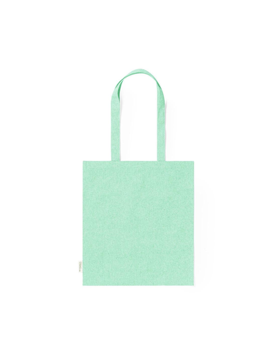 Bolsa fabricada en material100% algodón reciclado de 140g/m2. Certificación GRS (Global Recycled Standard / Estándar de Reciclaje Global), que garantiza el origen reciclado del material usado para fabricar el producto. De acabaco cosido, con asas largas reforzadas de 70 cm y disponible en variada gama de colores. Resistencia hasta 8kg, incluida etiqueta con distintivo de algodón reciclado.