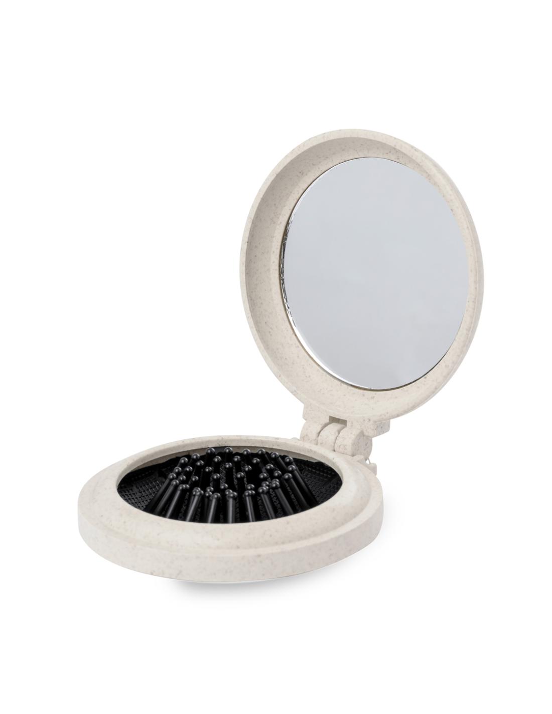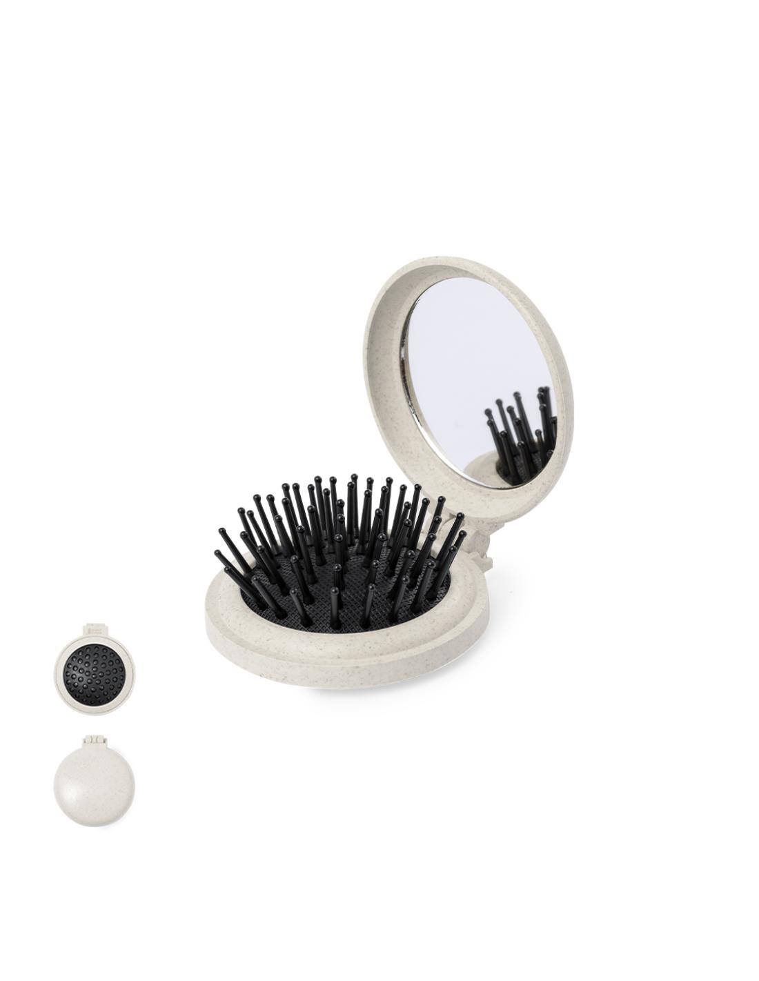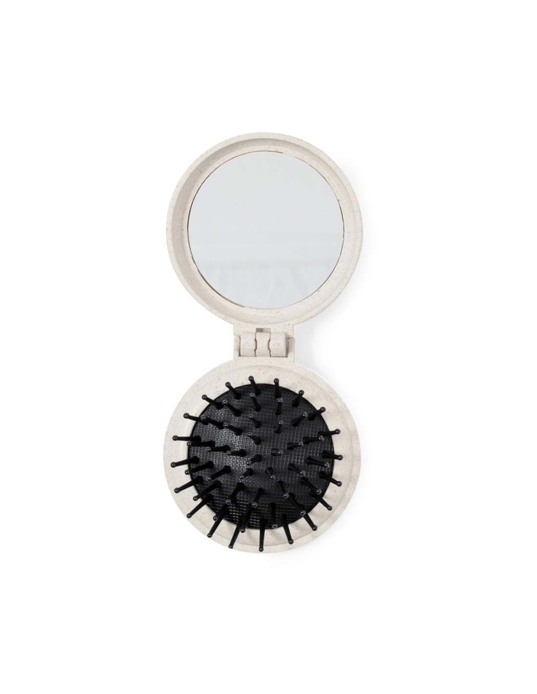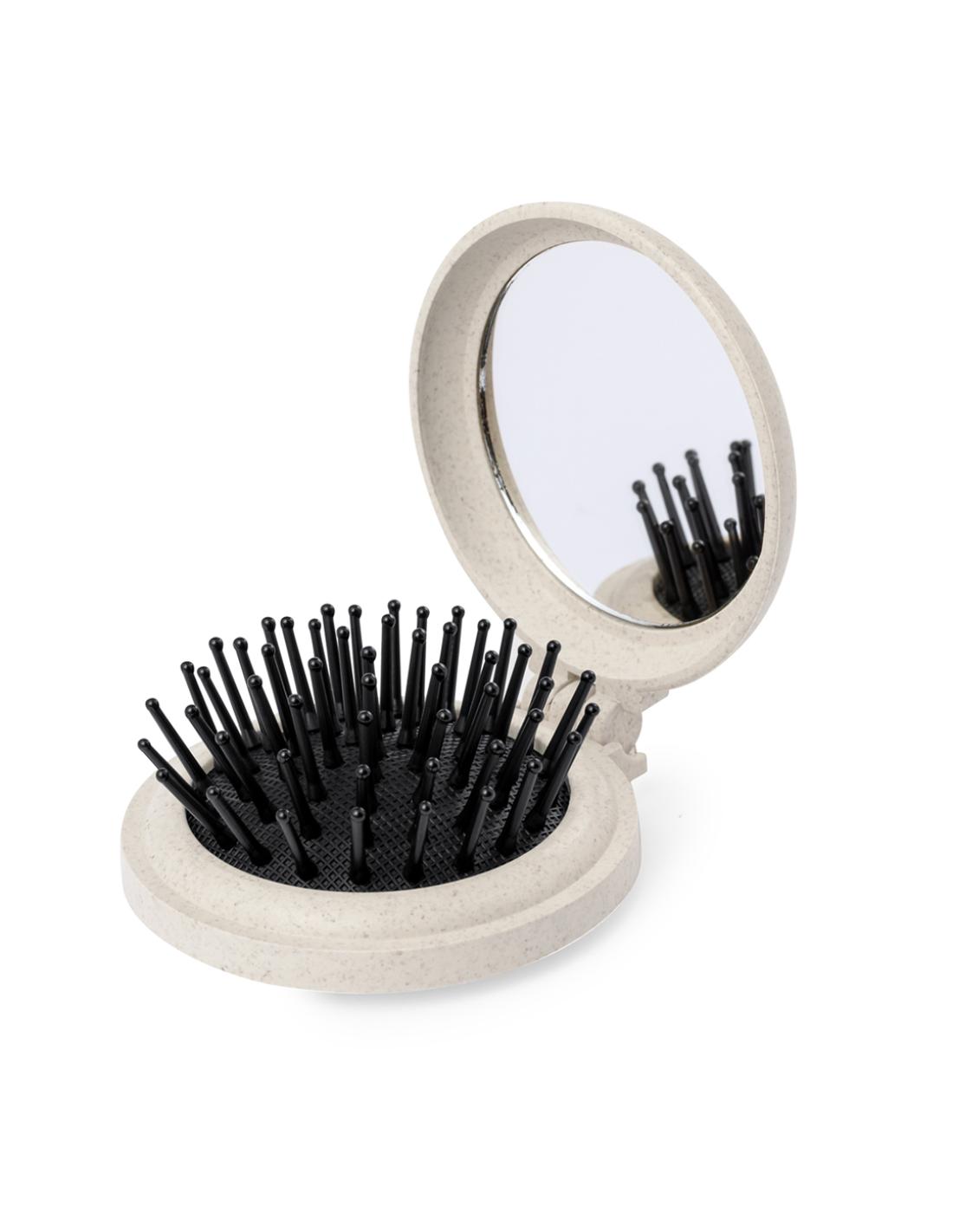Cepillo plegable con espejo fabricado en caña de trigo. Práctico peine con suaves cerdas compactas que se pueden plegar, con espejo en el interior de la tapa. Presentado en una bolsa individual de papel kraft. La caña de trigo fomenta la utilización de materias primas naturales, reduciendo así las emisiones contaminantes.