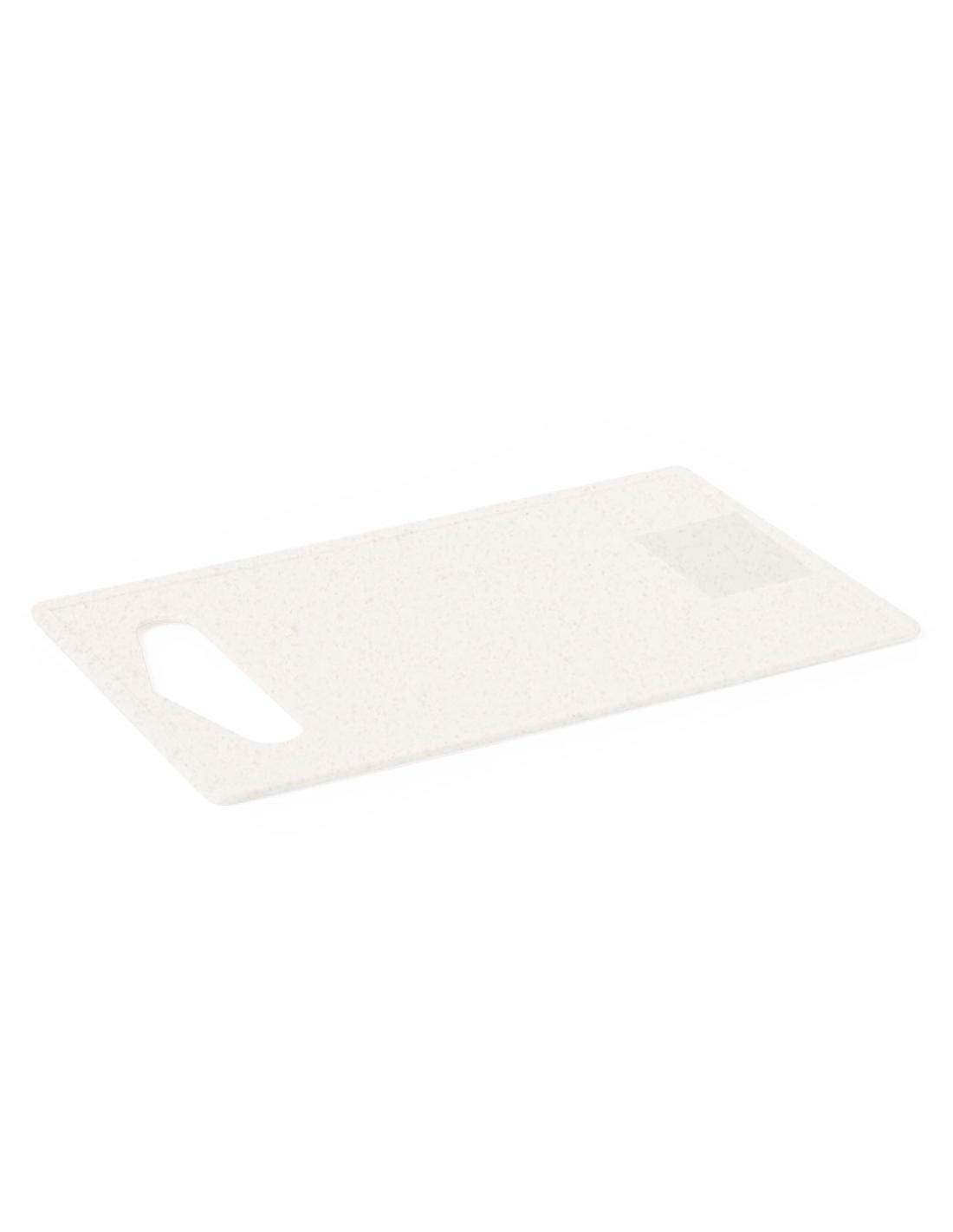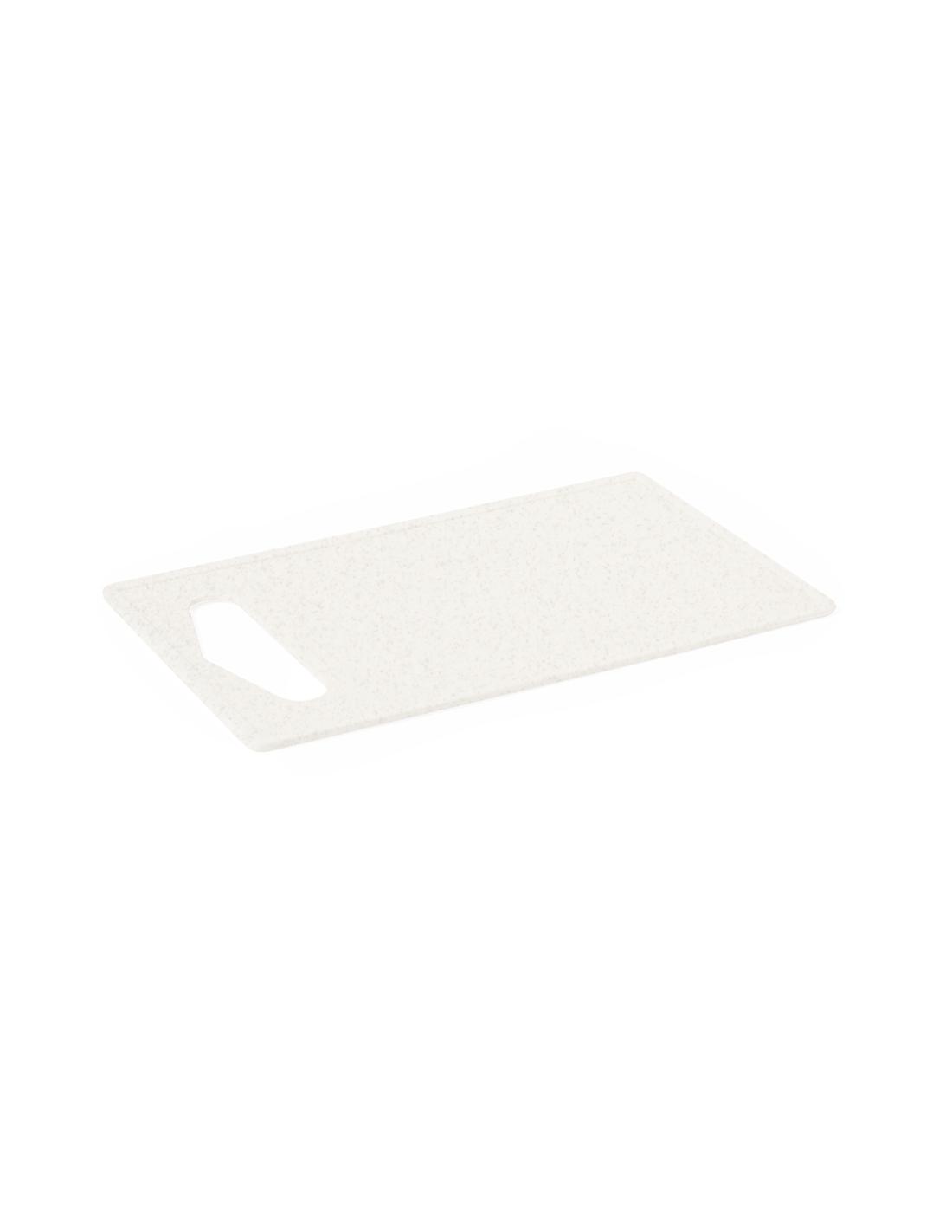 Tabla de cocina para cortar fabricada en PP. Con asa para un firme agarre, fácil de limpiar y guardar. Presentada individualmente bolsa reciclada.