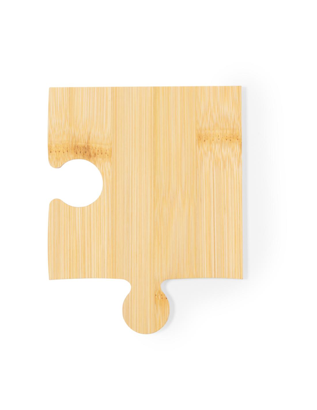 Set de posavasos fabricados en bambú. Consta de 4 piezas diseñadas en forma de puzle. Presentado individualmente en caja diseño kraft. Materiales como el bambú fomentan la utilización de materias primas naturales, reduciendo las emisiones contaminantes. Proviene de una planta de gran resistencia y versatilidad, con crecimiento y regeneración rápidos, siendo una excelente alternativa al uso de madera tradicional.