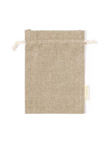 Bolsa eco-friendly en resistente material 100% algodón reciclado GRS de 120g/m2. Certificación GRS (Global Recycled Standard / Estándar de Reciclaje Global), que garantiza el origen reciclado del material usado para fabricar el producto. Cierre de cordón de algodón y acabado cosido, incluye etiqueta exterior con distintivo algodón reciclado.