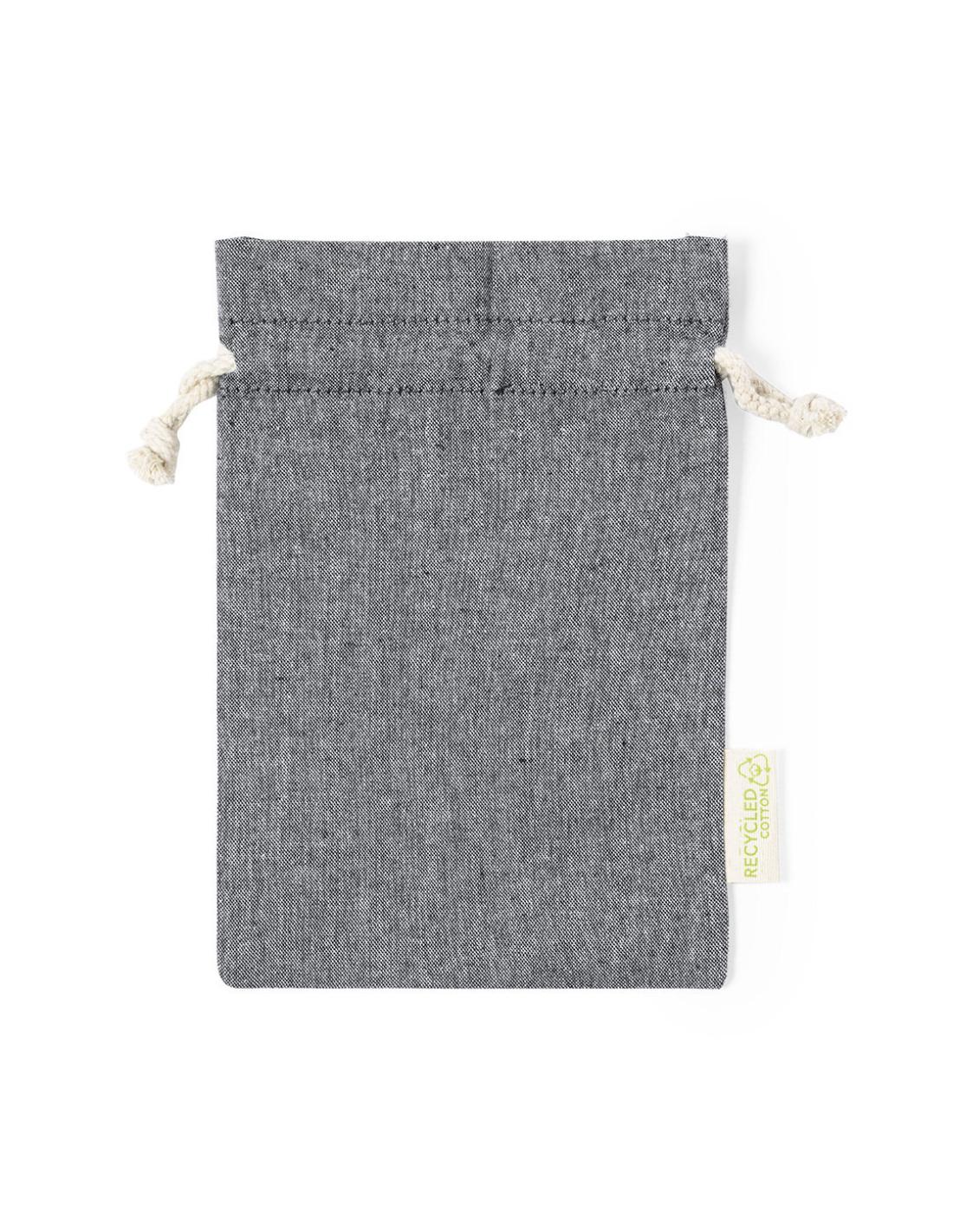 Bolsa eco-friendly en resistente material 100% algodón reciclado GRS de 120g/m2. Certificación GRS (Global Recycled Standard / Estándar de Reciclaje Global), que garantiza el origen reciclado del material usado para fabricar el producto. Cierre de cordón de algodón y acabado cosido, incluye etiqueta exterior con distintivo algodón reciclado.