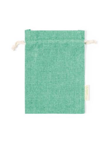 Bolsa eco-friendly en resistente material 100% algodón reciclado GRS de 120g/m2. Certificación GRS (Global Recycled Standard / Estándar de Reciclaje Global), que garantiza el origen reciclado del material usado para fabricar el producto. Cierre de cordón de algodón y acabado cosido, incluye etiqueta exterior con distintivo algodón reciclado.