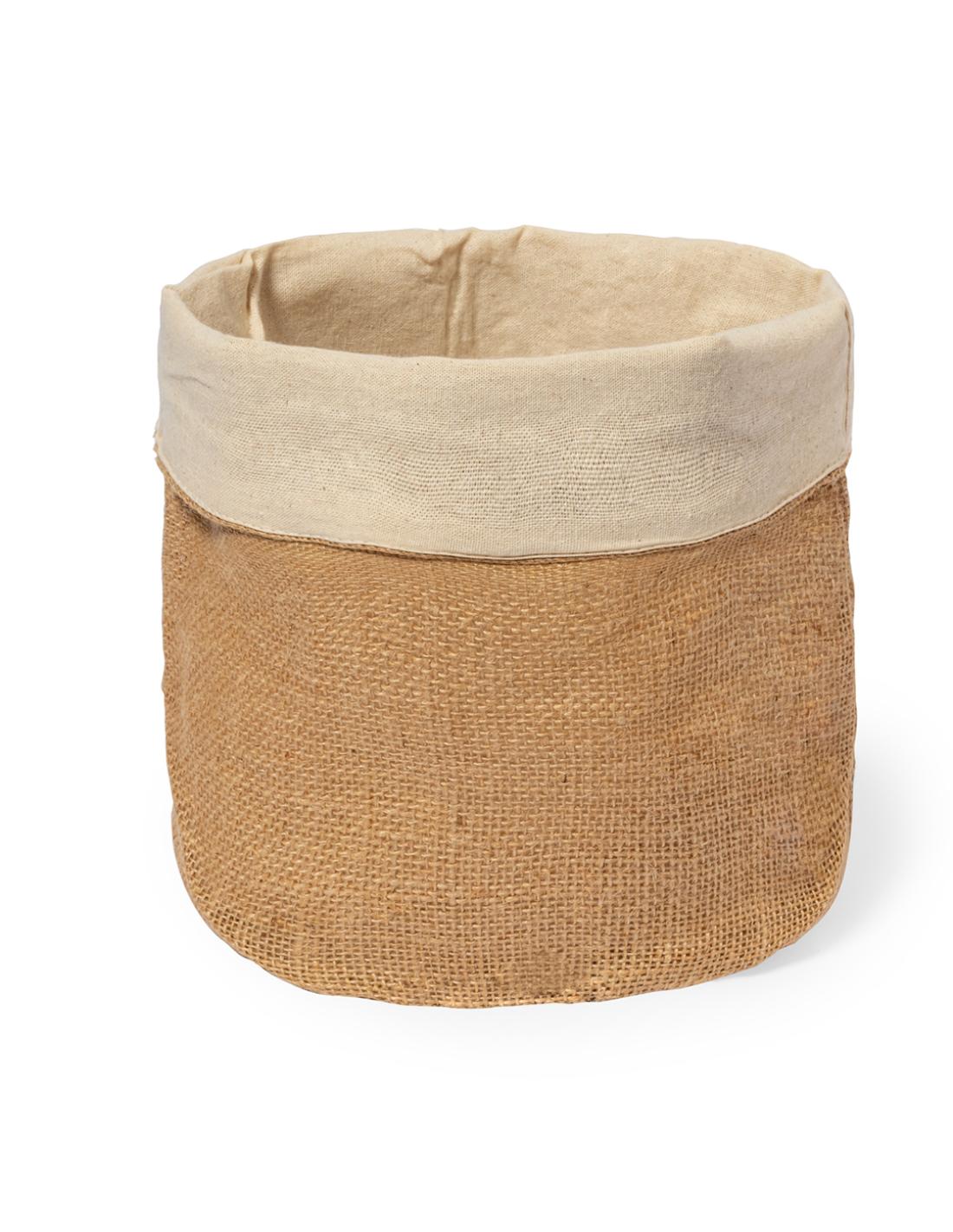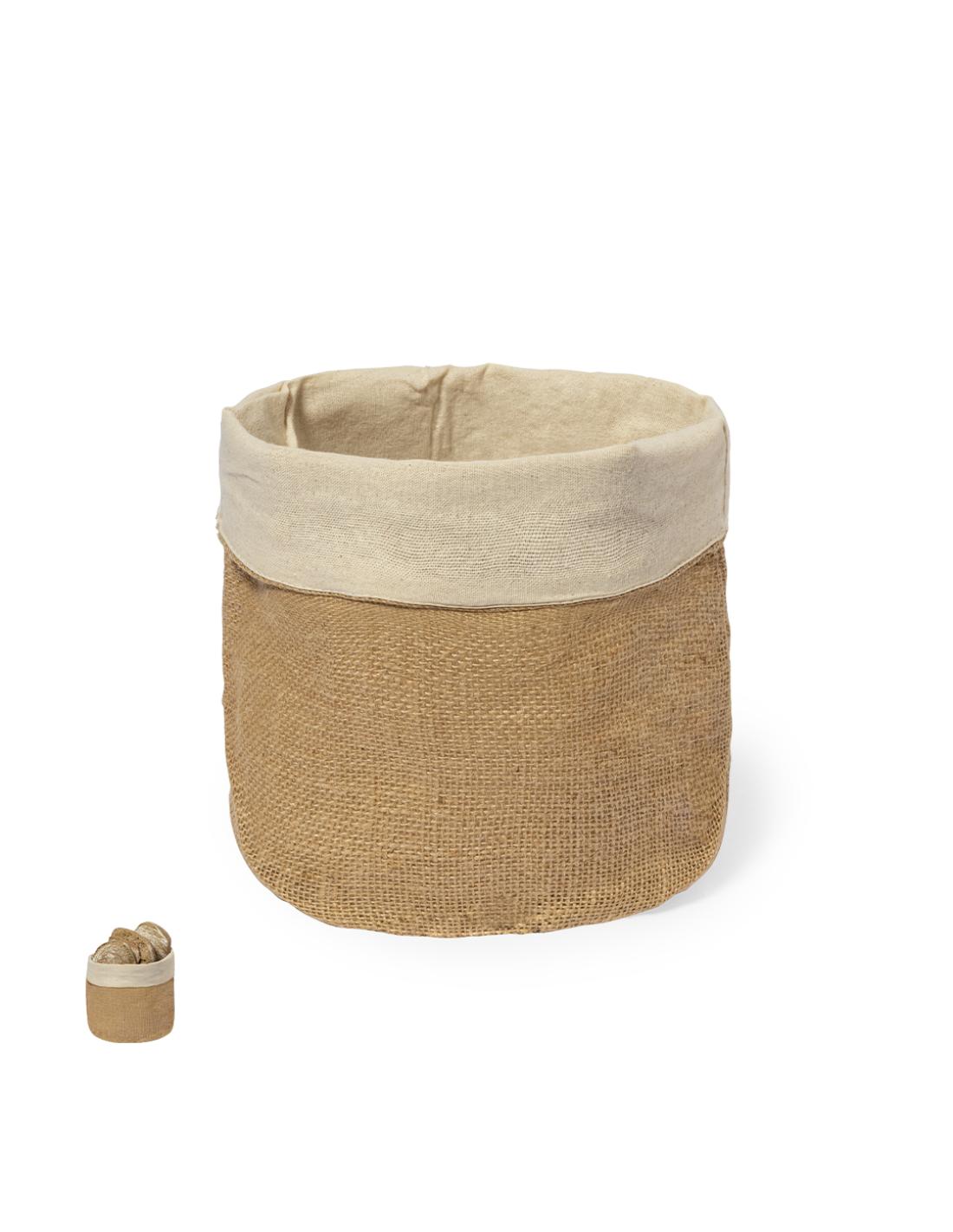 Panera elaborada con suave algodón 100% en el interior y yute en el exterior, con un diseño redondo. Presentada en bolsa individual reciclada.