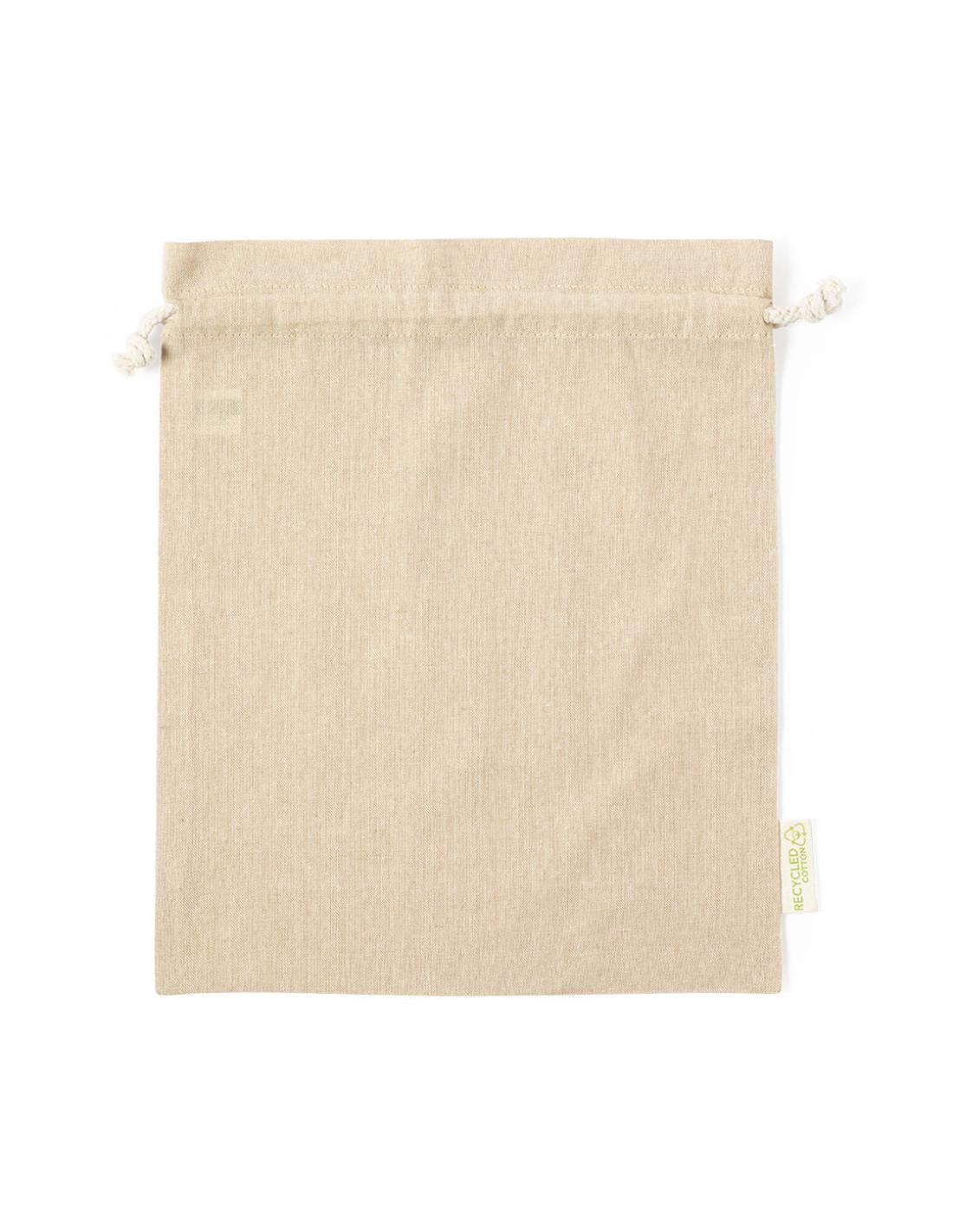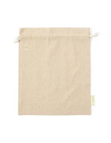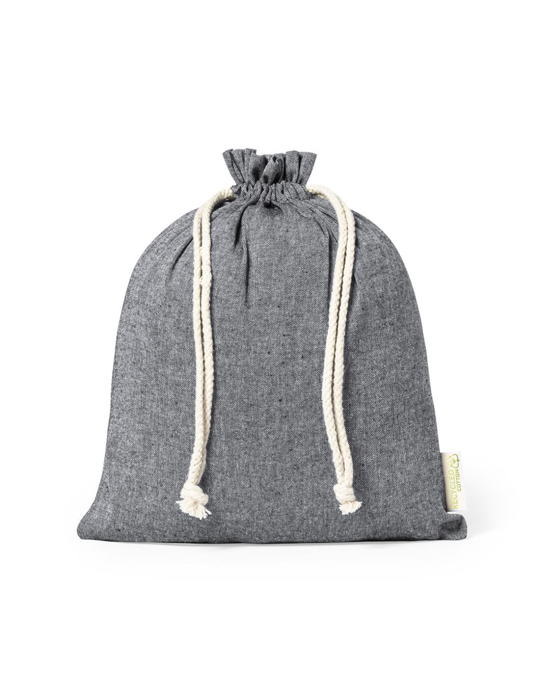 Bolsa eco-friendly en resistente material 100% algodón reciclado GRS de 120g/m2. Certificación GRS (Global Recycled Standard / Estándar de Reciclaje Global), que garantiza el origen reciclado del material usado para fabricar el producto. Cierre de cordón de algodón y acabado cosido, incluye etiqueta exterior con distintivo algodón reciclado.