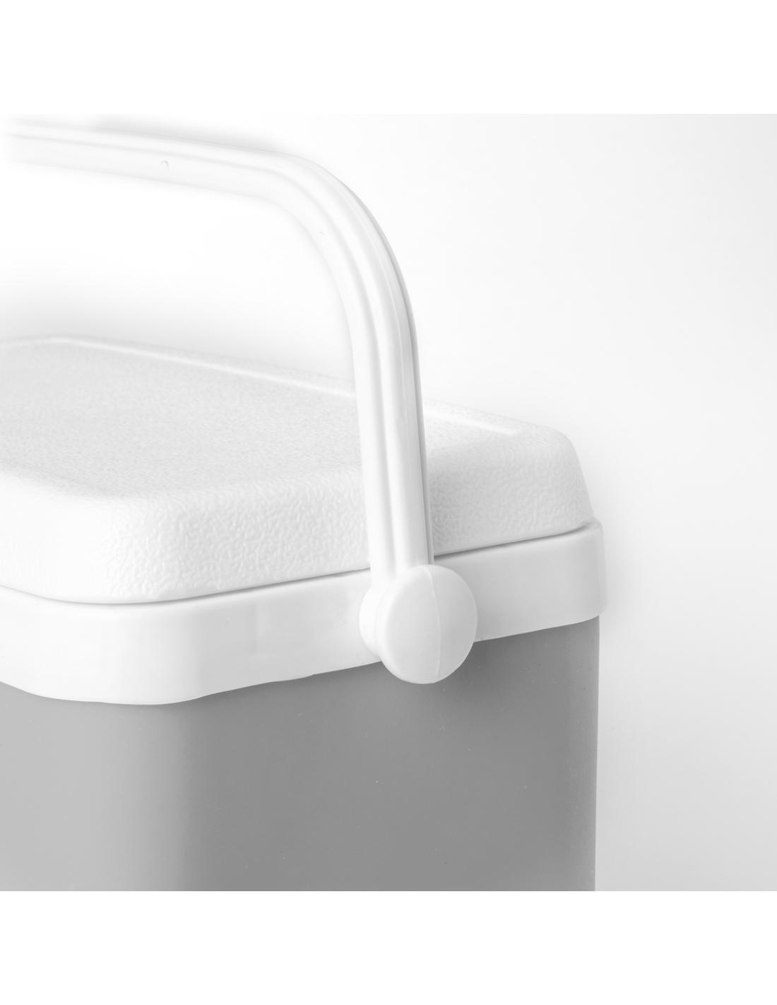 Nevera fabricada en PP de 4L. Atractivo diseño vintage para mantener bebidas y alimentos fríos, de diseño rígido con doble pared. Tapadera de bisagra con cierre de seguridad y asa rígida para un fácil transporte. Con base de color gris y accesorios en blanco. Presentada individualmente en bolsa reciclada.