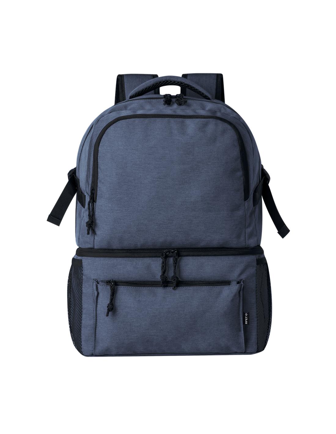 Mochila multiusos fabricada en resistente poliéster 600D RPET, con un diseño urbano y práctico. Destaca por su compartimento isotérmico independiente en la base, forrado con PEVA para mantener la temperatura. El compartimento principal se cierra con cremallera, de doble tirador, y cuenta con bolsillos frontales y laterales de malla para mayor versatilidad. Las cintas de hombros son acolchadas y ajustables. Además, dispone de un asa de mano acolchada en la parte superior. Etiqueta distintiva de RPET. Presentada individualmente en bolsa reciclada.El material RPET se elabora a partir de plástico reciclado, para así fomentar la reutilización de residuos plásticos y ayudar a la sostenibilidad del planeta.