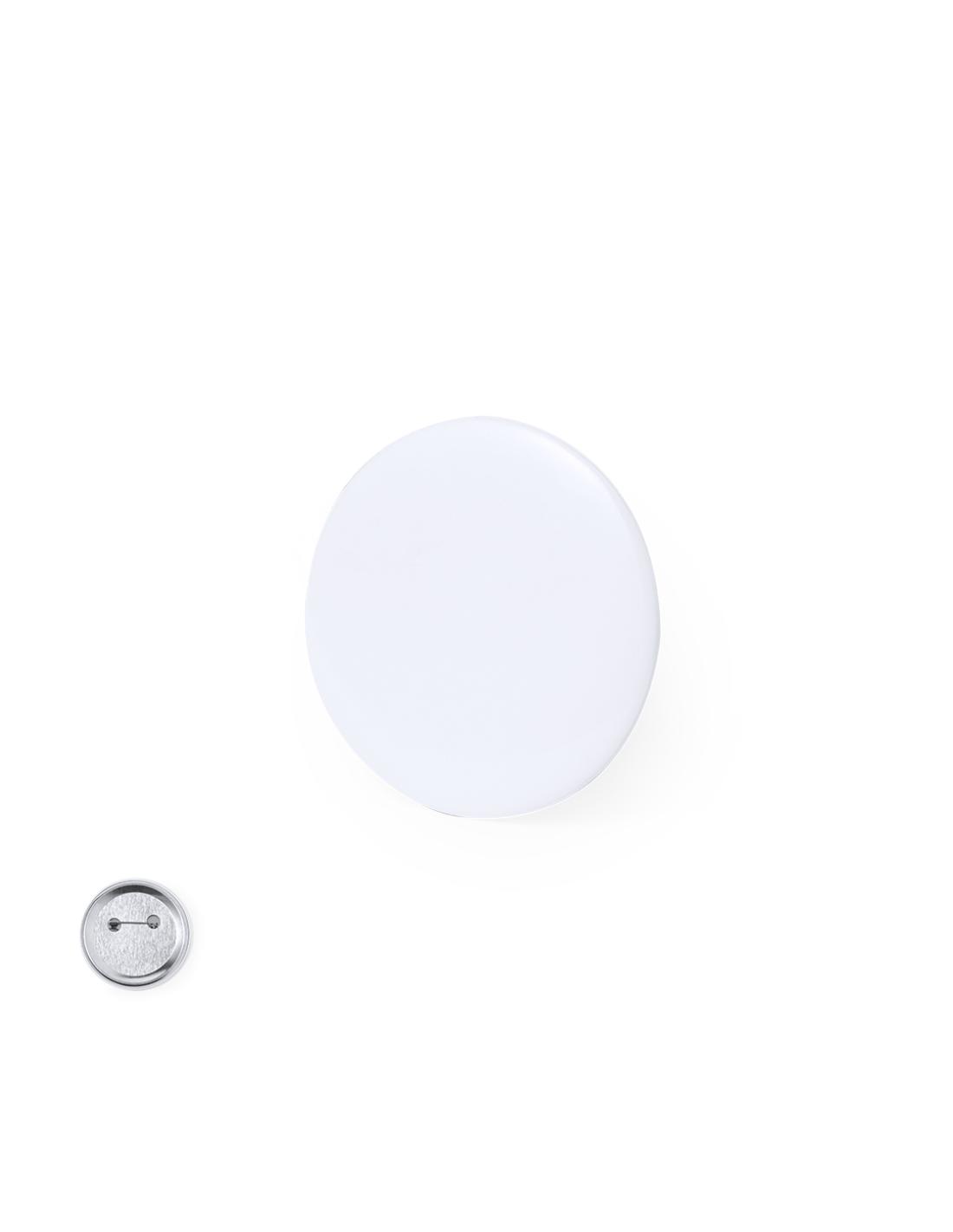 Excelente pin de color blanco de gran tamaño. Accesorio versátil para la estampación de multitud de diseños gracias a su base blanca, adaptable a cualquier tejido gracias a su imperdible situado en la parte posterior.