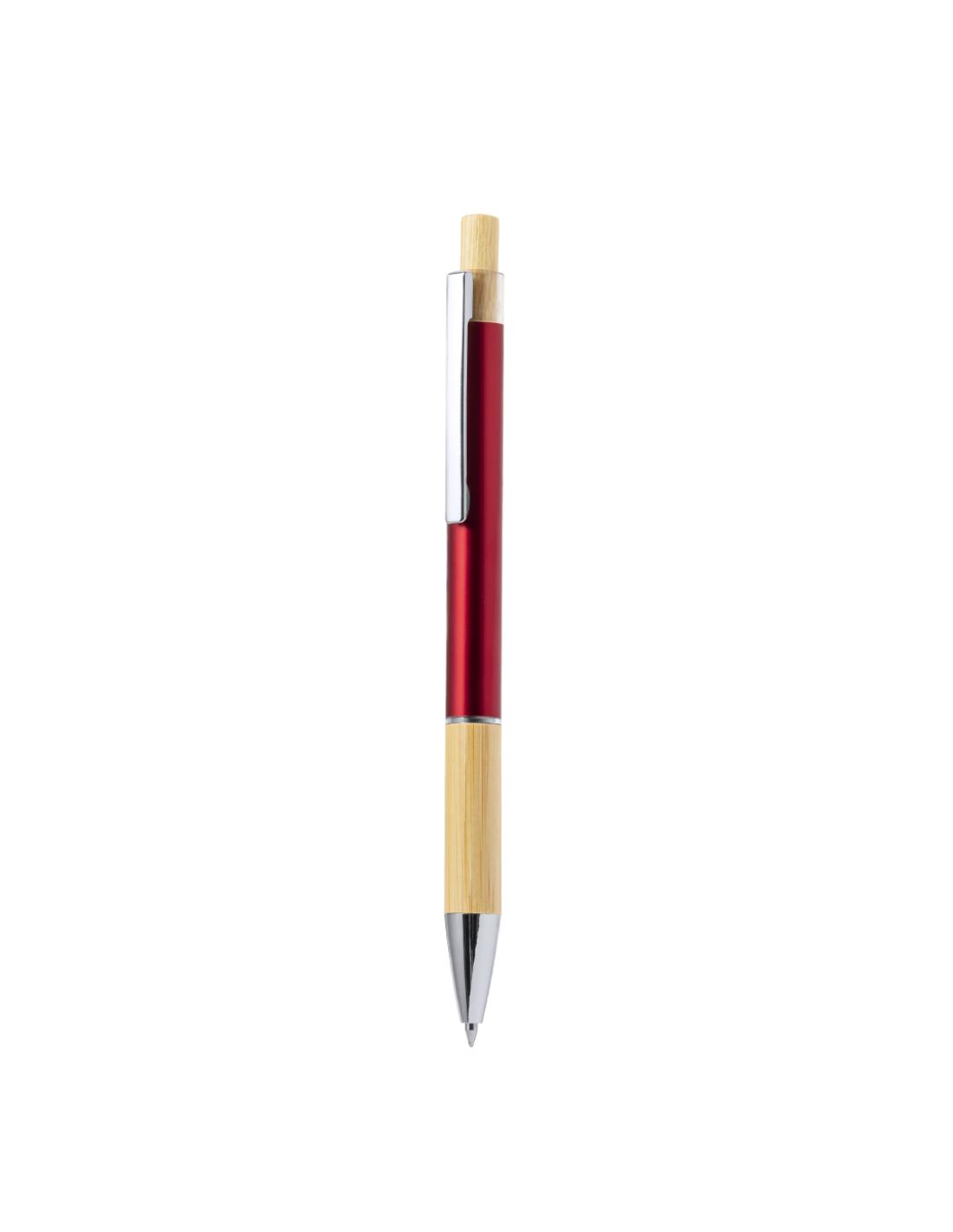 Elegante bolígrafo de bambú y aluminio con mecanismo pulsador. Cuerpo en resistente aluminio de acabado brillante y empuñadura en bambú, con la caña en una amplia gama de distintivos colores. Clip metálico, con pulsador de bambú retráctil y en tinta azul. Presentado en bolsa individual reciclada.Materiales como el bambú fomentan la utilización de materias primas naturales, reduciendo las emisiones contaminantes. Proviene de una planta de gran resistencia y versatilidad, con crecimiento y regeneración rápidos, siendo una excelente alternativa al uso de madera tradicional.