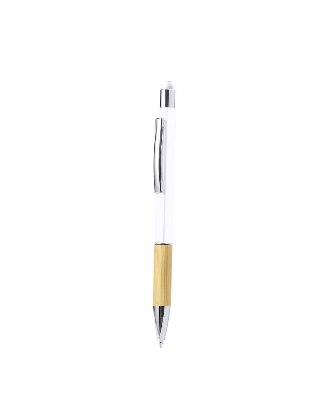 Elegante bolígrafo puntero de bambú y aluminio con mecanismo giratorio. Cuerpo en resistente aluminio de acabado brillante y empuñadura en bambú, con la caña en una amplia gama de distintivos colores y puntero en la parte superor a juego. Clip metálico y en tinta azul. Presentado en bolsa individual reciclada.Materiales como el bambú fomentan la utilización de materias primas naturales, reduciendo las emisiones contaminantes. Proviene de una planta de gran resistencia y versatilidad, con crecimiento y regeneración rápidos, siendo una excelente alternativa al uso de madera tradicional.